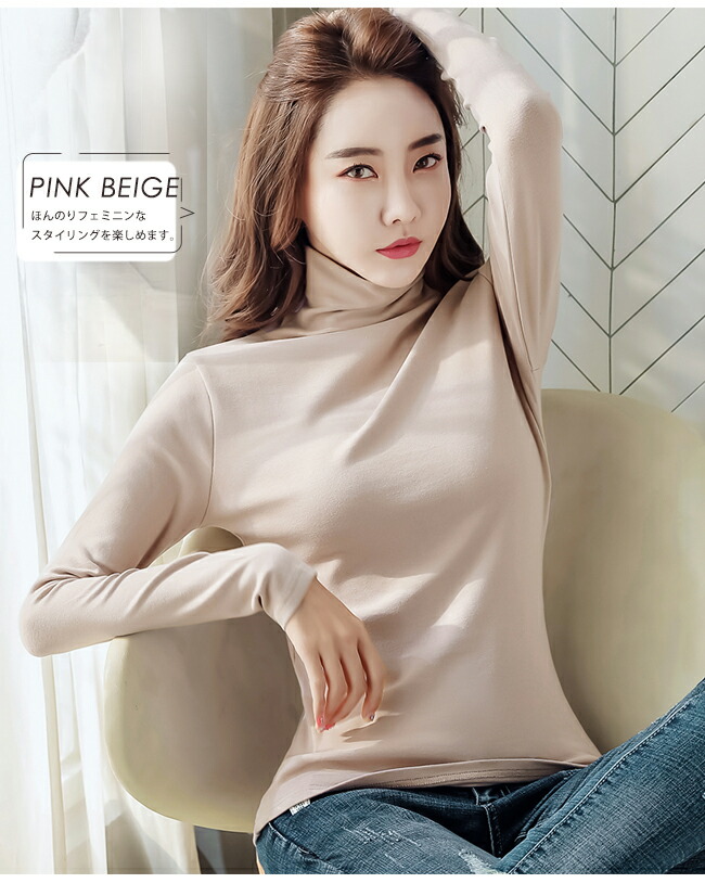 長袖Tシャツ 裏起毛 タートルネック レディースファッション 人気 ホワイト ピンクベージュ ブラック コーヒー S M L XL 2XL