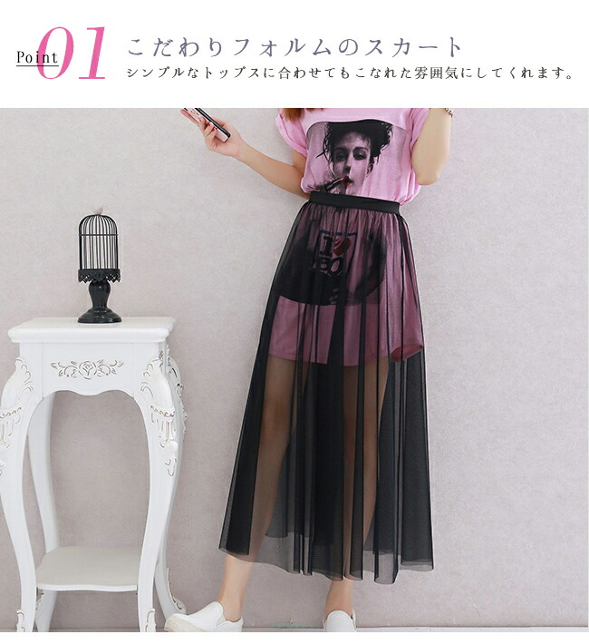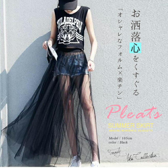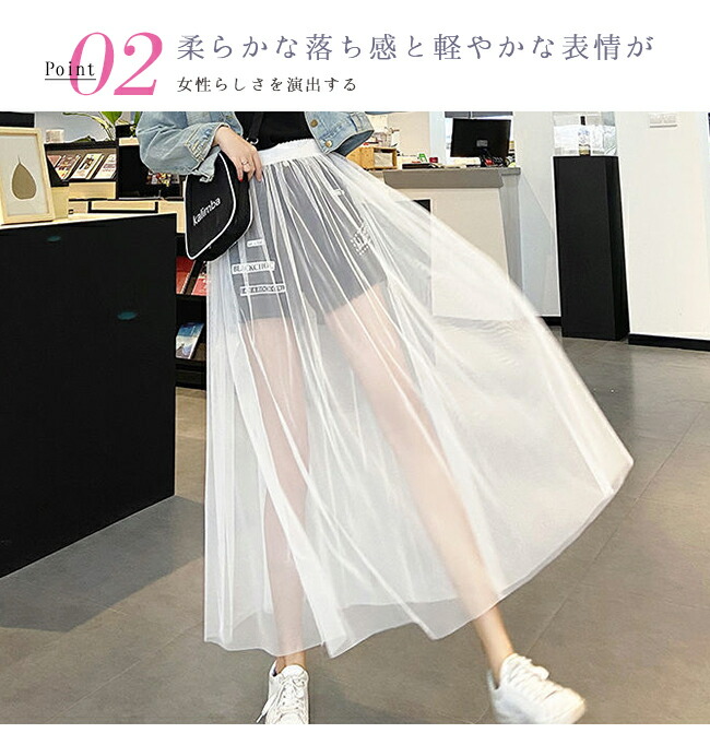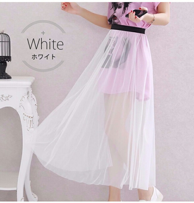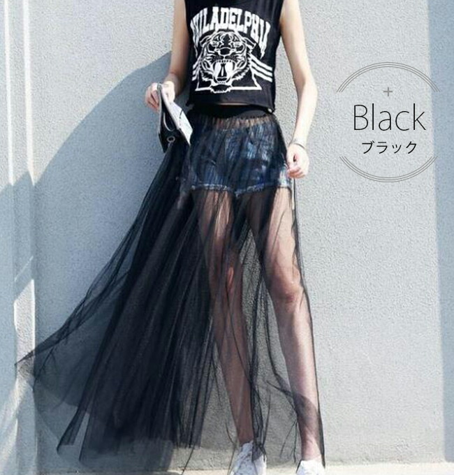 チュールスカート シースルー 重ね着コ ボトムス スカート 通販 ブラック ホワイト M(丈78cm) L(丈78cm) XL(丈78cm) M(丈85cm) L(丈85cm) XL(丈85cm)
