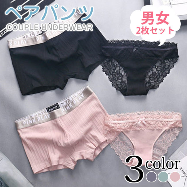 ペアパンツ 下着 カップル お揃い 男 ブラック ピンク グリーン 男L+女M 男XL+女M 男XXL+女M 男L+女L 男XL+女L 男XXL+女L