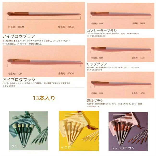 メイクブラシ セット 8本セット 13 8本 13本 ピンク ベージュ ブルー グリーン イエロー レッドブラウン