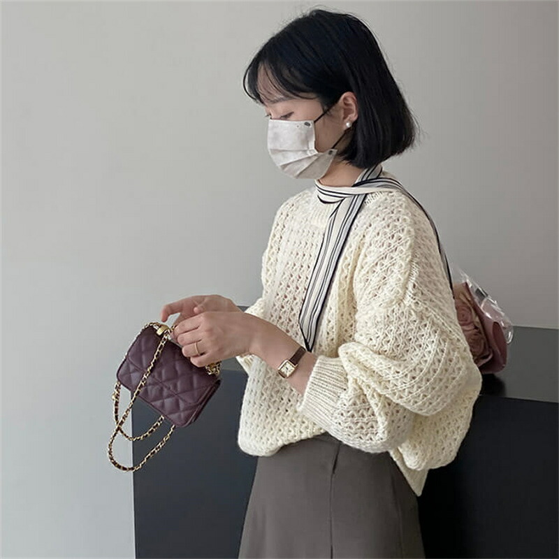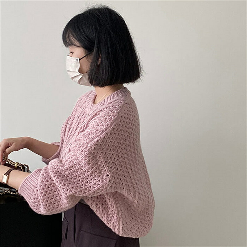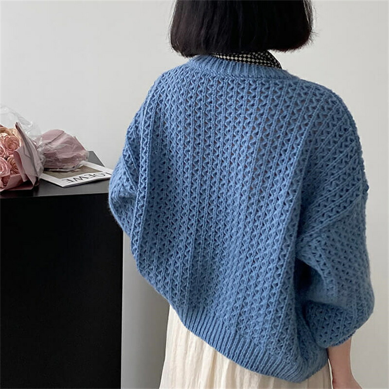 メッシュ ニット トップス レディース 春 長袖 透かし編み ショート丈 レイヤード 秋 秋冬 大きいサイズ メッシュショートプルオーバー ふあふあ ボトルネックニット ブルー ピンク ブラ ホワイト
