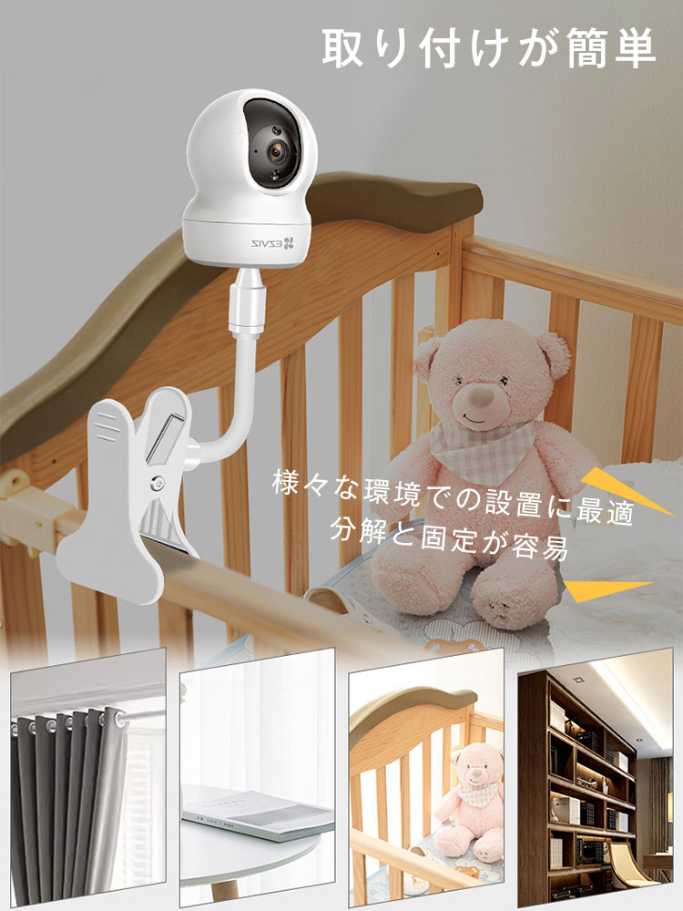 フレキシブルマウント 防犯カメラ用アクセサリー クランプ型 TP-Link Tapo C200 C210カメラ用 ベビーモニター用 フレキシブルブラケット フレキシブル 台座 4 簡単設置 スタン 1