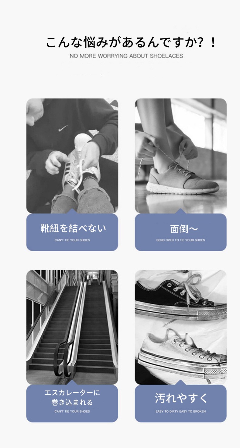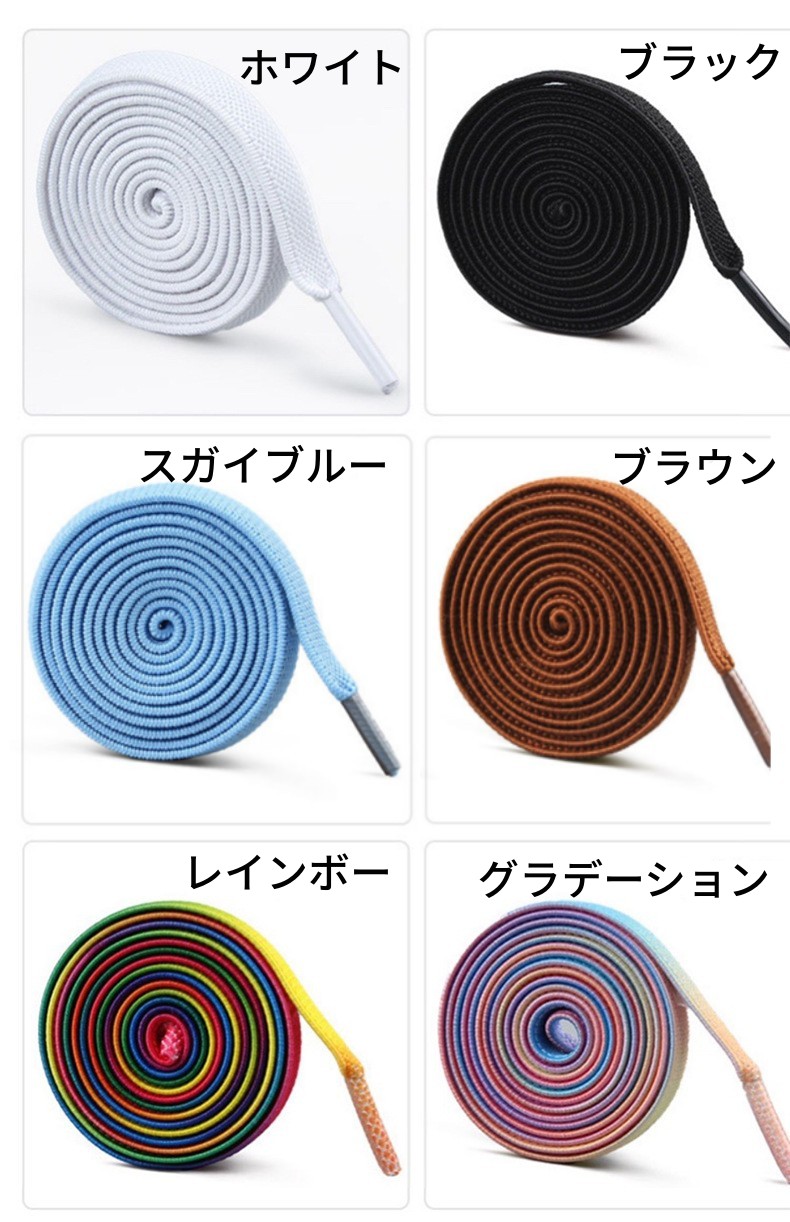 2足セット靴紐 結ばない ほどけない 靴 早い者勝ち ホワイト ブラック スガイブルー ブラウン レインボー グラデーション ダークグレー グレー パープル グリーン