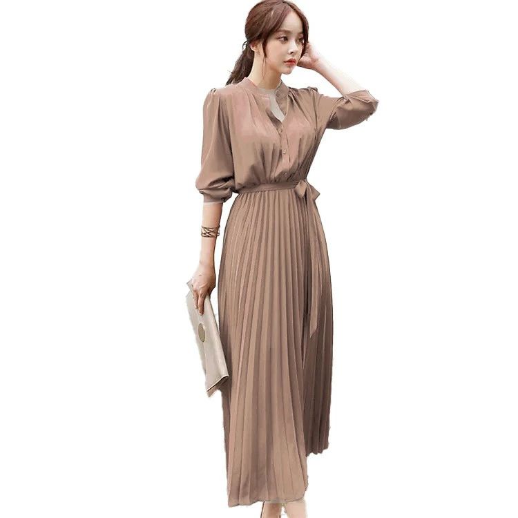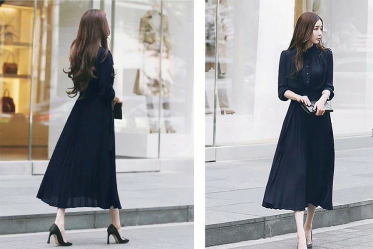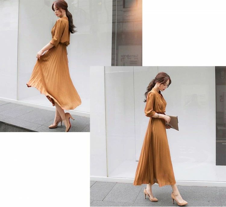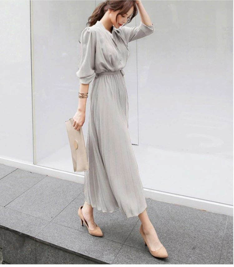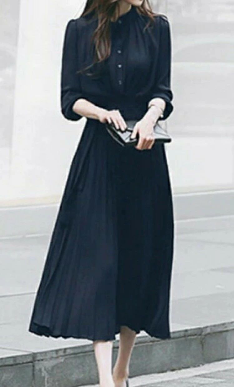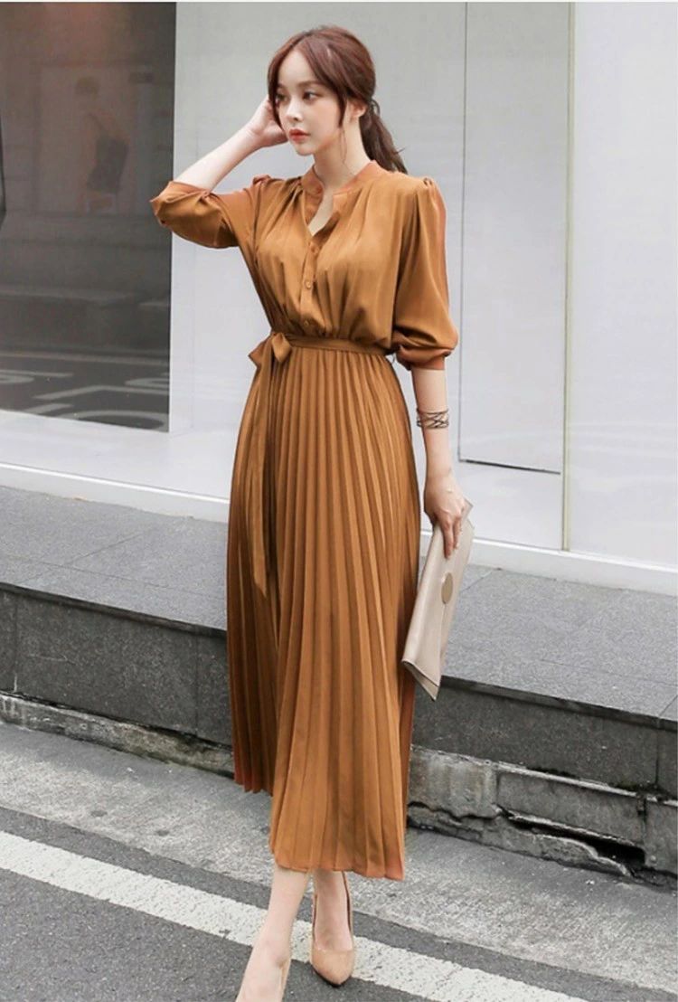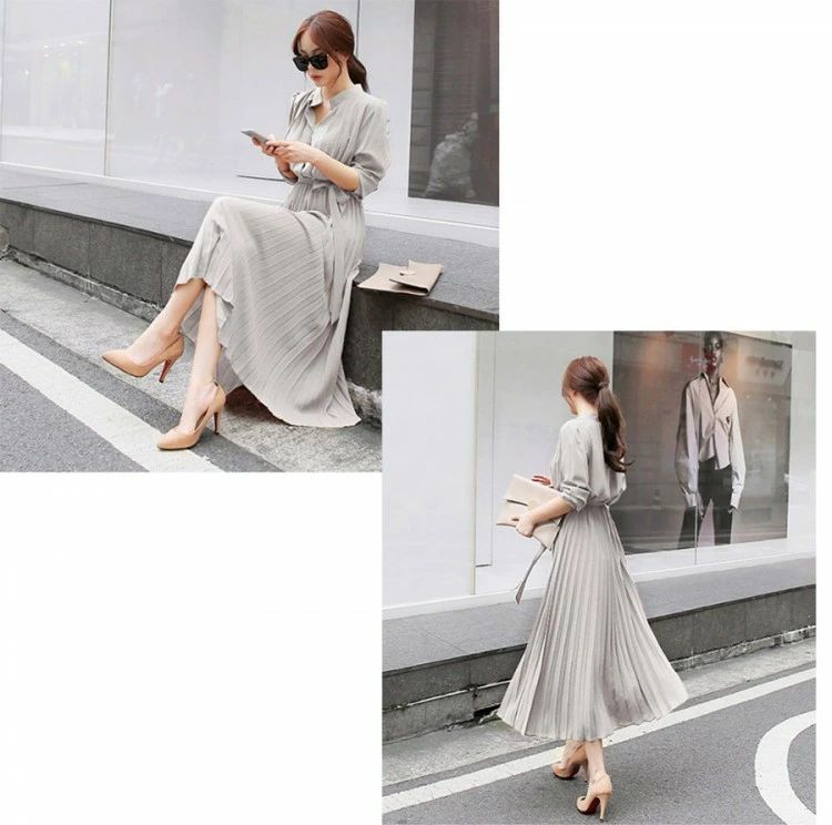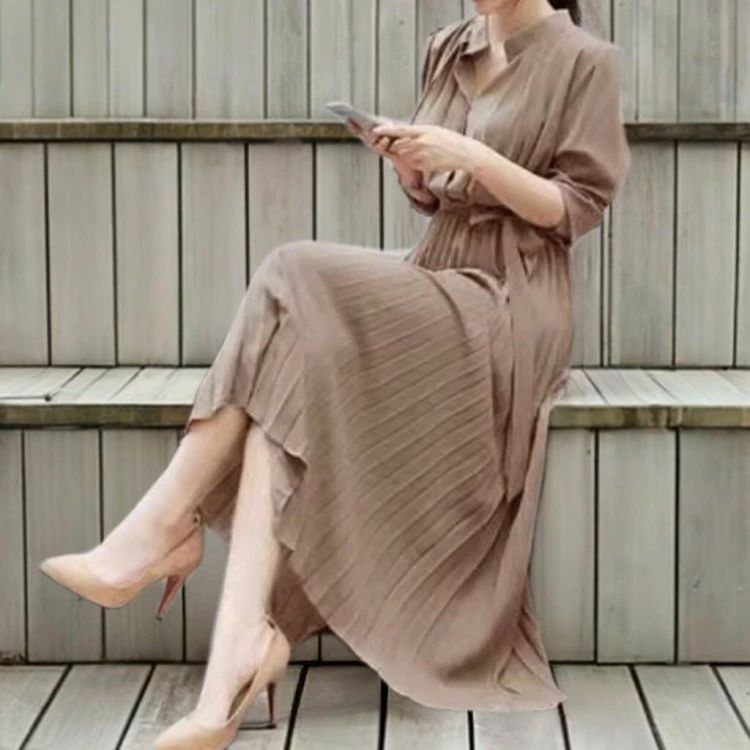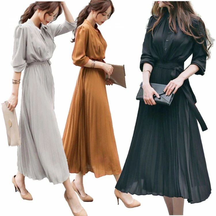 フレア プリーツ マタ フォーマル 上品 大人 夏 春 冬 秋 パーティードレス シャツワンピース 長袖 カジュア オフィスカジュアル