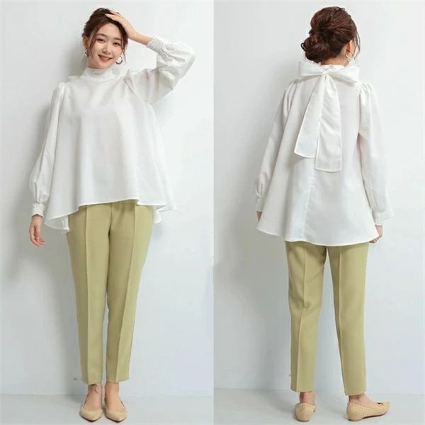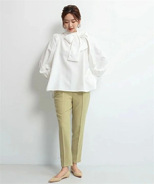 シアースリーブ ドッキングシャツ ボウタイシャツブラウス
