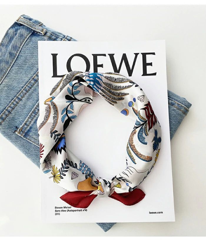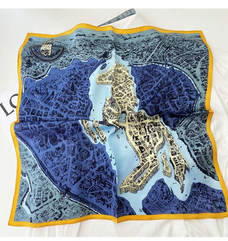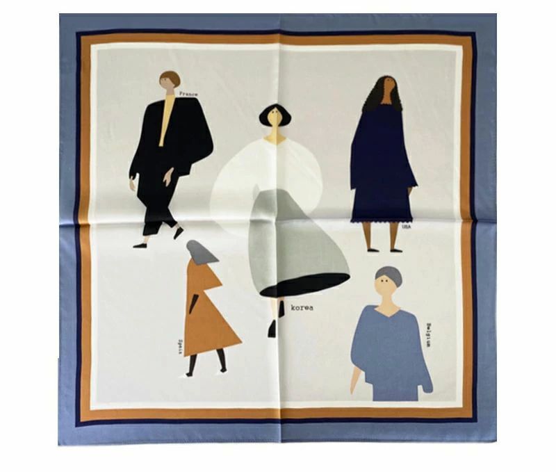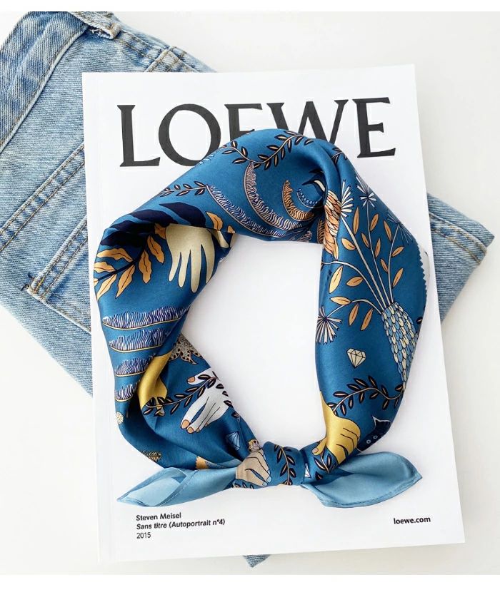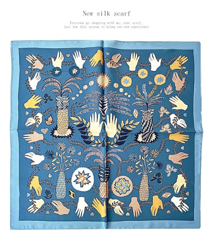大人可 絹 天然素材 ネックスカーフ 53cm×53cm プリント 小さい 正方形 シルク100% ネッカチーフ レディース オフィススカーフ