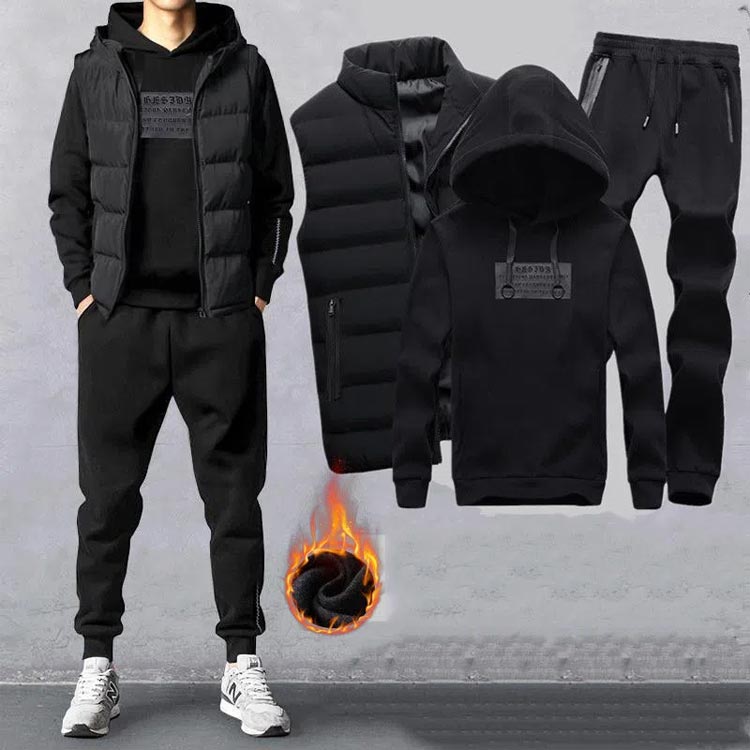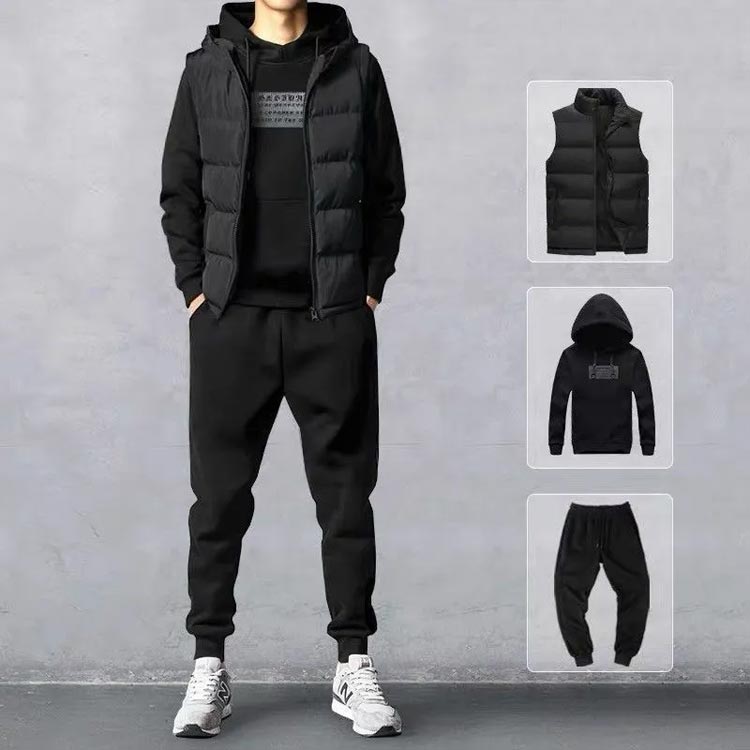 3点セット スウェットパンツ ジップアップ パーカー 上下セット 冬 裏起毛 セットアップ メンズ 長袖 フード付き ボア 中綿ベスト ベスト もこもこ ダウンベスト トレーニング ロングパンツ 暖か