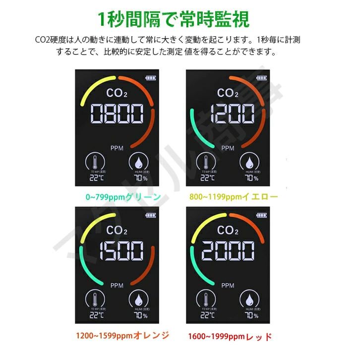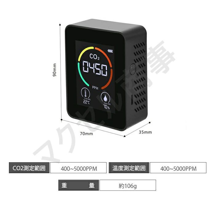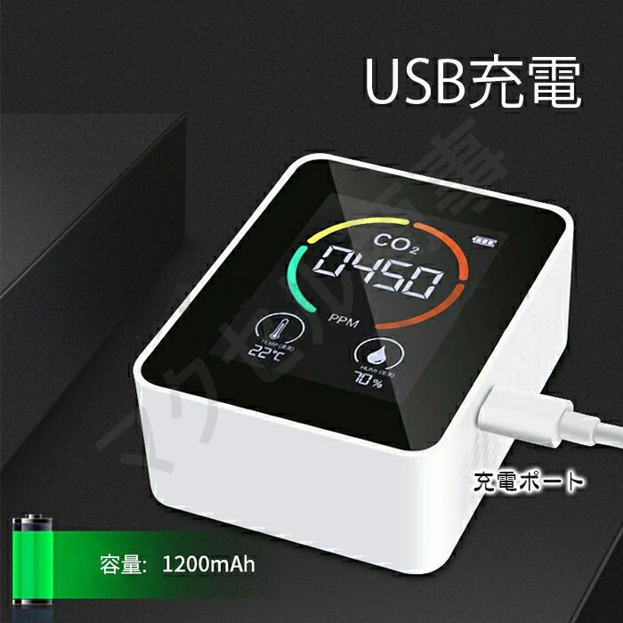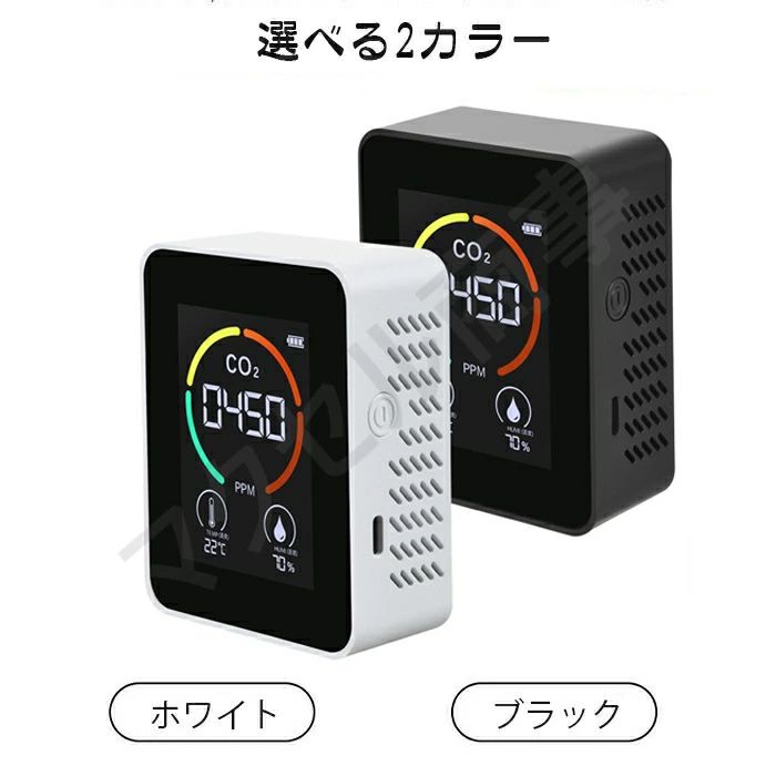 CO2濃度測定器 3in1 二酸化炭素 ホワイト ブラック
