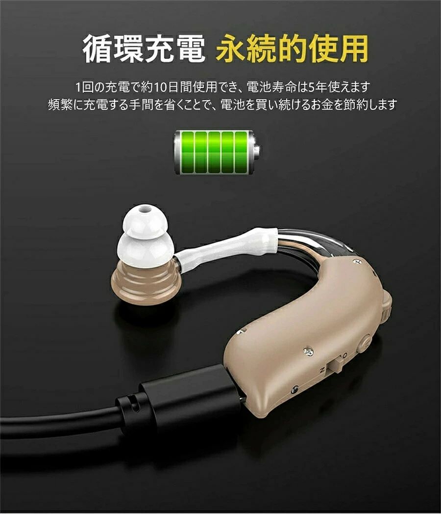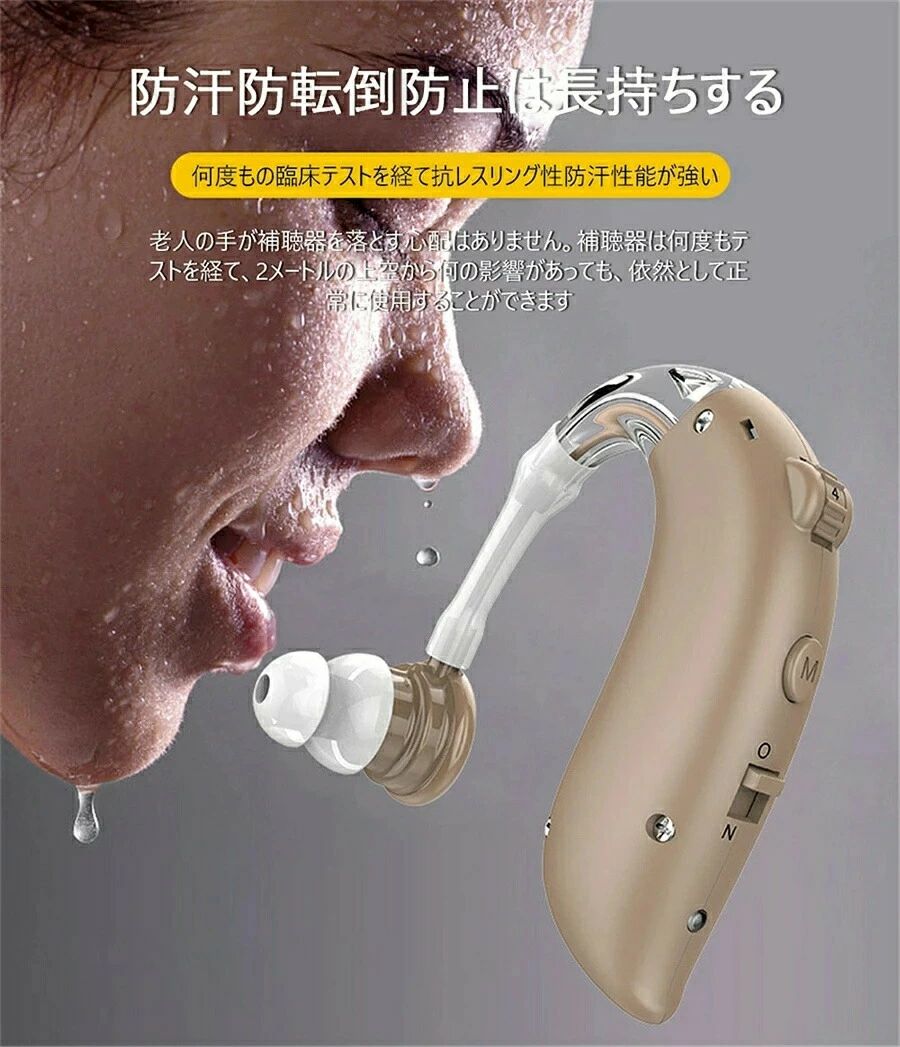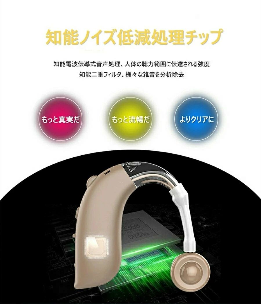 補聴器 耳掛け式 デジタル補聴器 超軽 肌色 ブルー ブラック