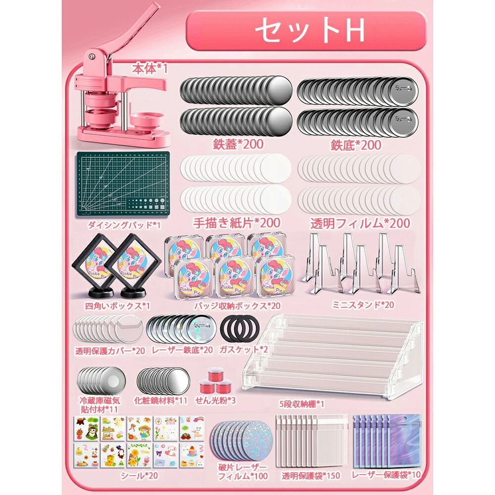 缶バッジマシーン 58mm金型 缶バッ ホビー 人気 ピンク グリーン セットA セットB セットC セットD セットE セットF セットG セットH 本体だけ*1