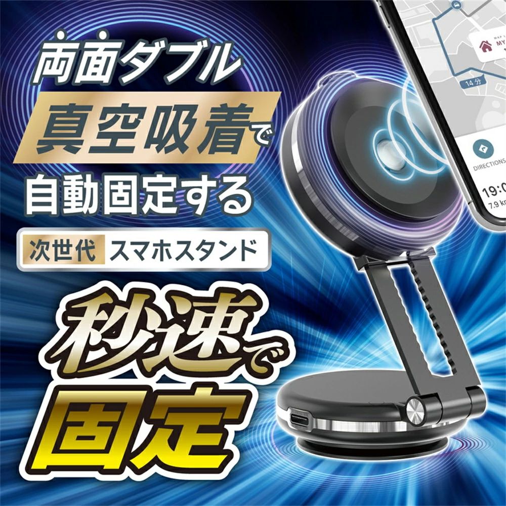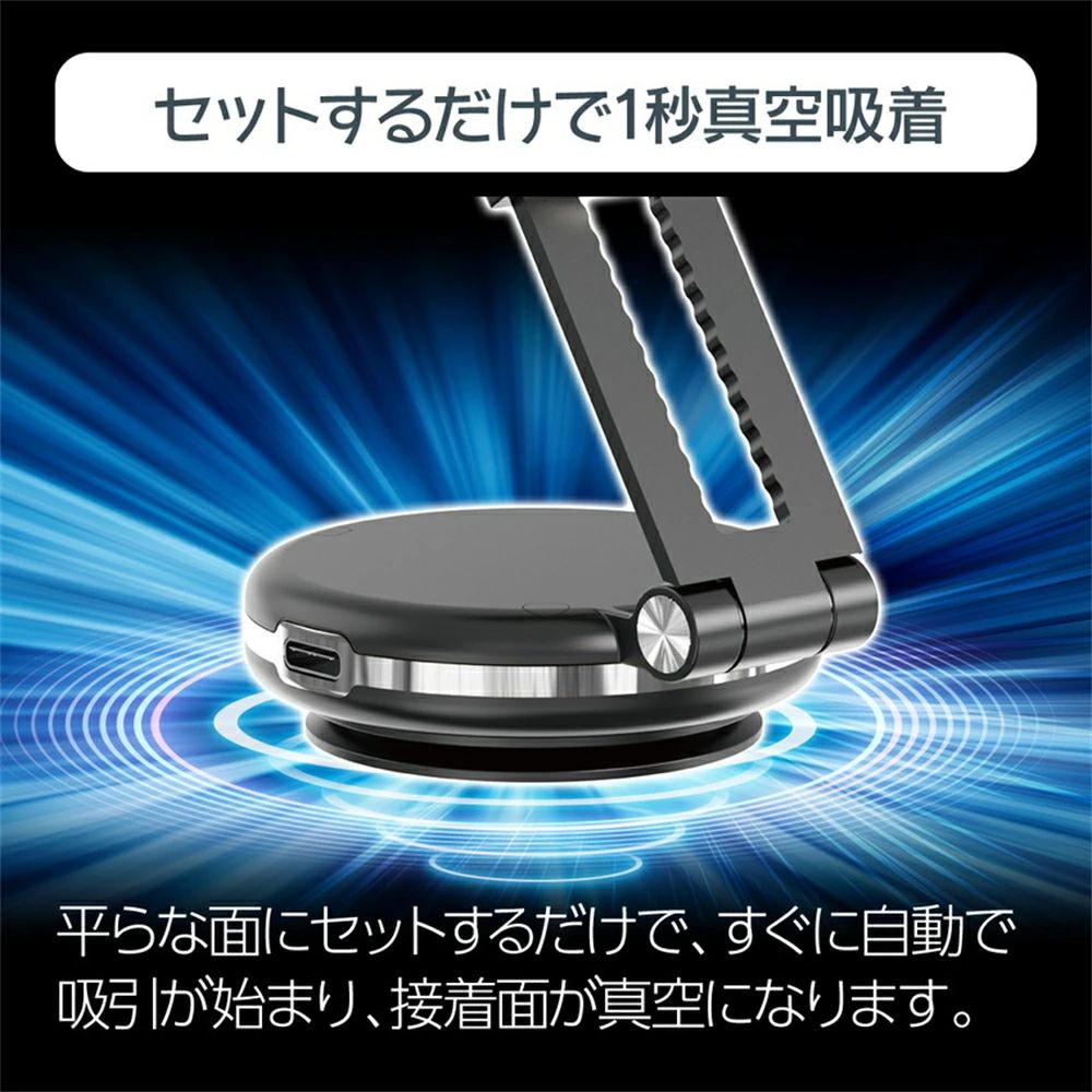 スマホホルダー 真空スマホスタンド 電動真空吸着機能 折り畳み式 ダブル吸盤 車載スマホホルダー 安定性抜 超強吸着力
