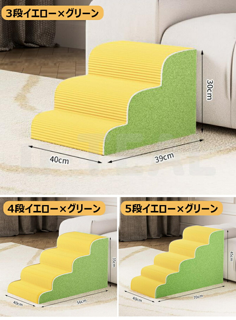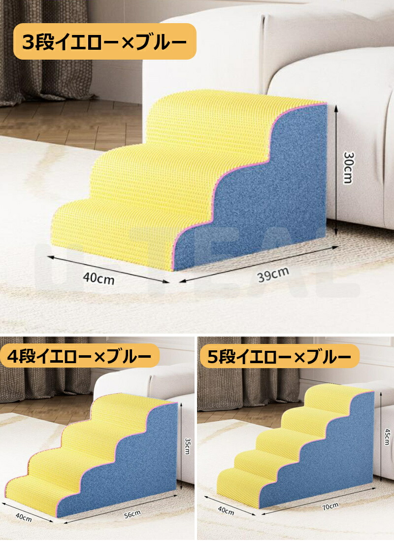 ペットステップ ペットスロープ ドッグ ペット ペットグッズ 特集 グレー イエロー×ブルー イエロー×グリーン 3段 4段 5段