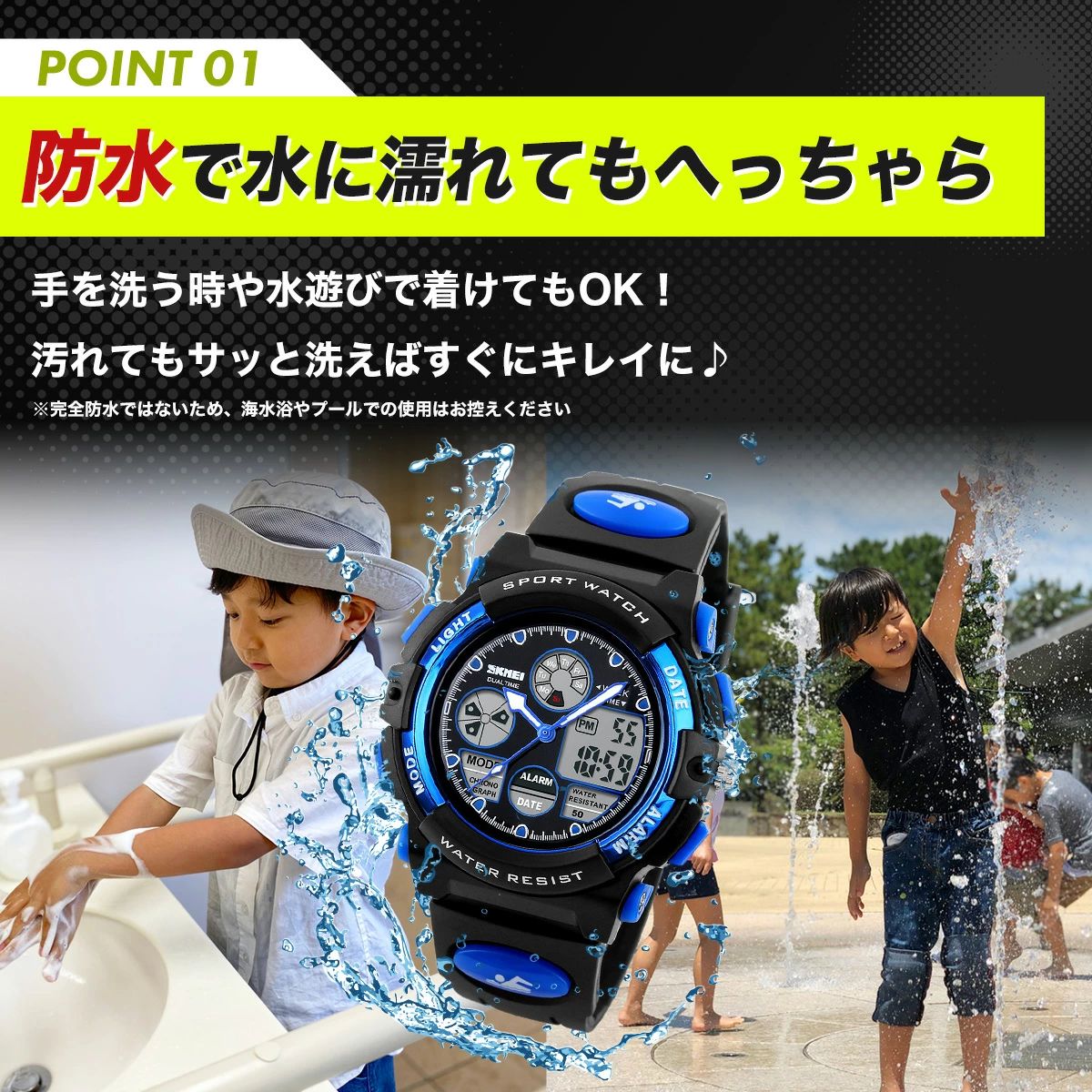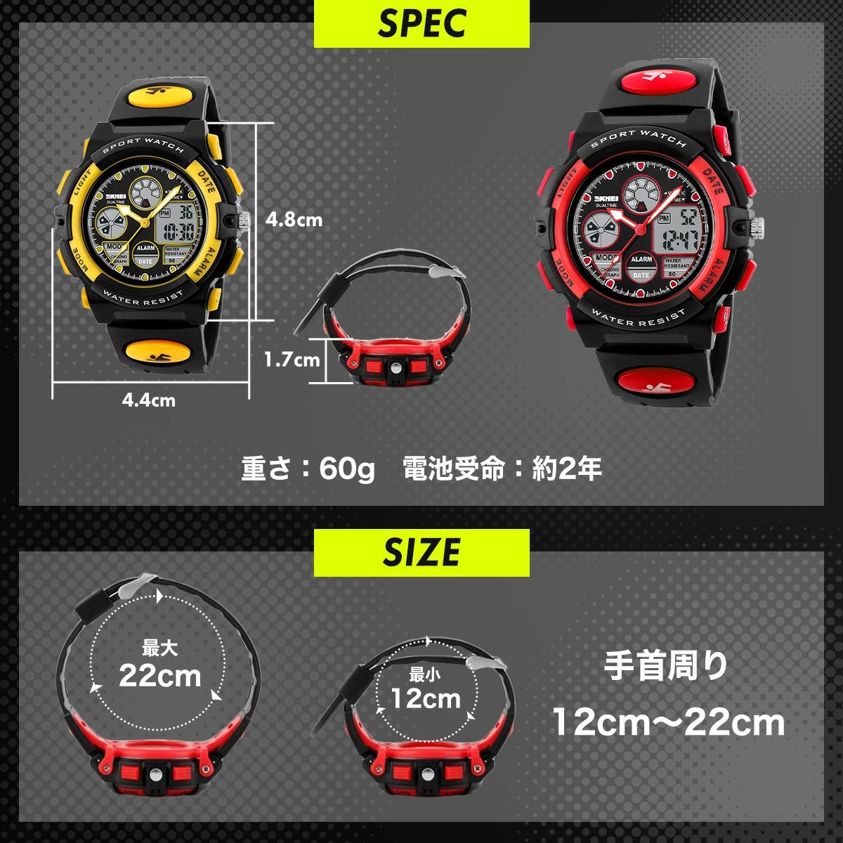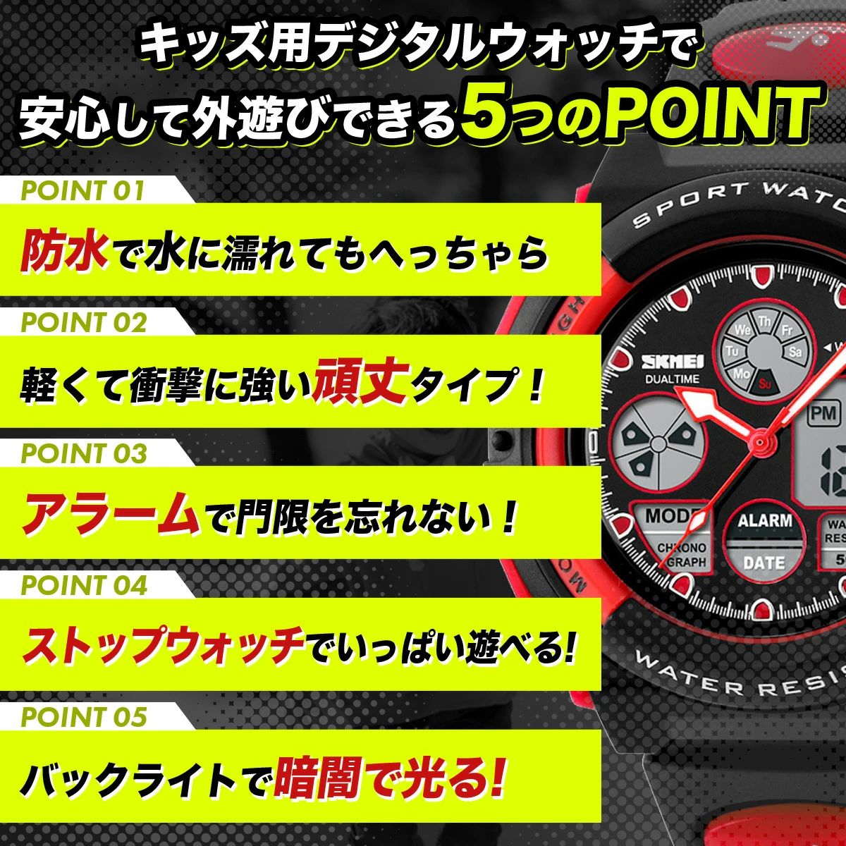 腕時計 子供 男 防水 男子 男の子 イエロー レッド ブルー ブラック