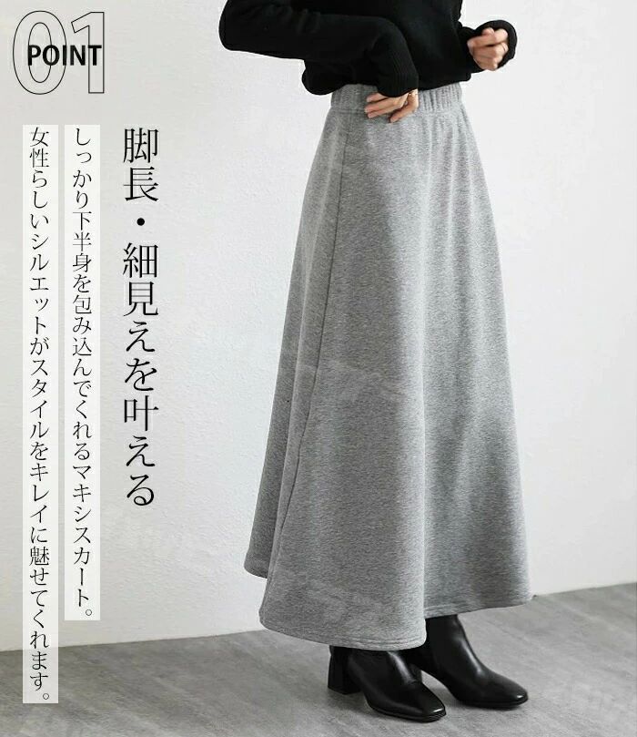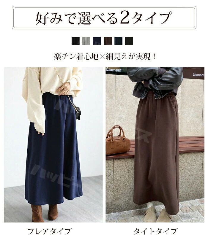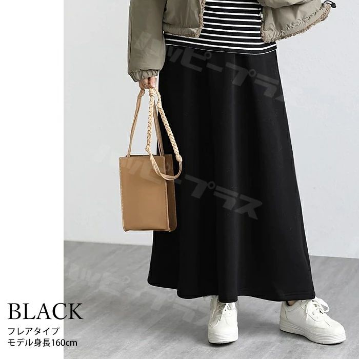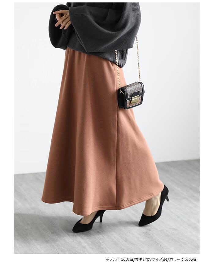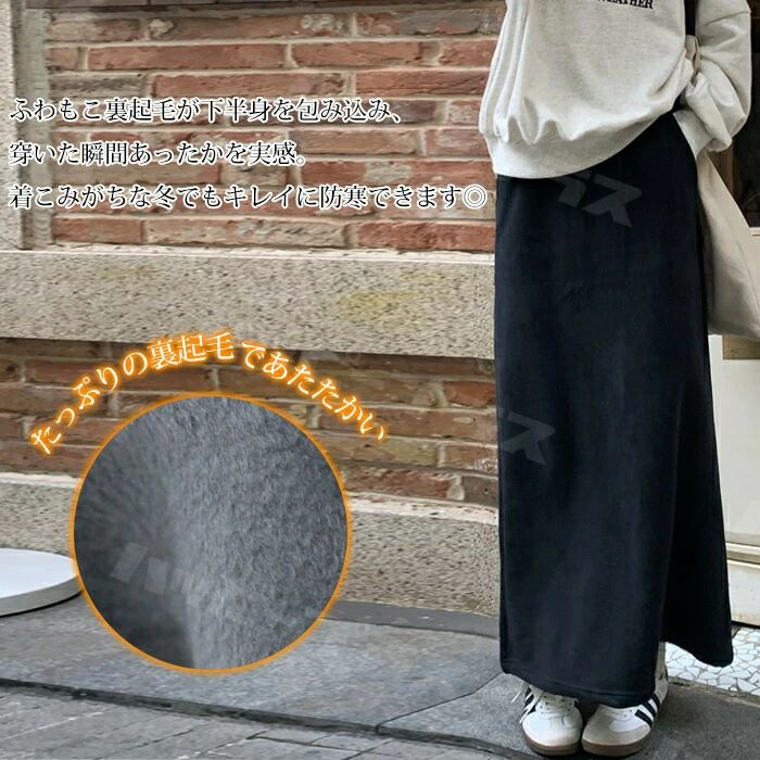 裏起毛 マキシスカート ロングスカート ボトムス スカート 人気 ブラック ネイビー グレー ブラウン デニムブラック デニムブルー フレアタイプ タイトタイプ