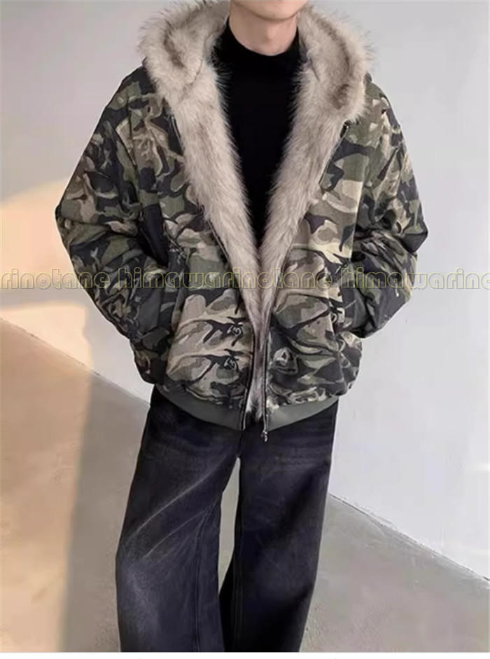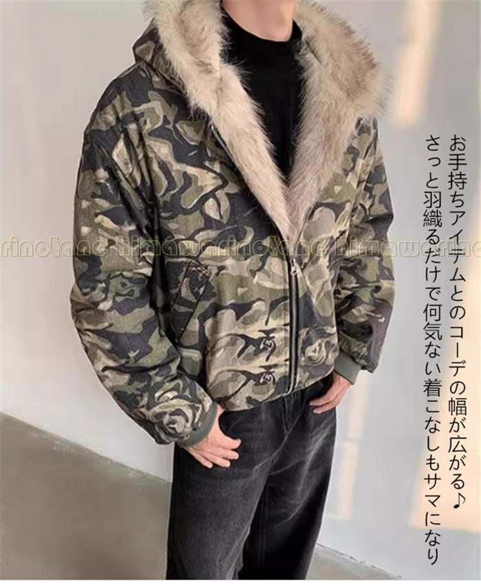 迷彩柄中綿入りファー ジャケット メン メンズファッション 新作 M L XL 2XL S 3XL