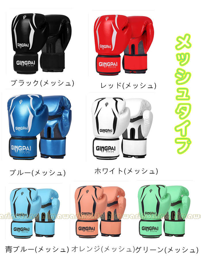 16色 更新版 最新ボクシンググローブ スポーツ アウトドア 特集 オール黒 黒+ゴールド 黒+白 白+黒 ワインレッド 黒+赤 ピンク パープル ブラック(メッシュ) レッド(メッシュ) ホワイト(メッシュ) ブルー(メッシュ) オレンジ(メッシュ) グリーン(メッシュ) 青ブルー(メッシュ) 6oz 8oz 10oz 12oz