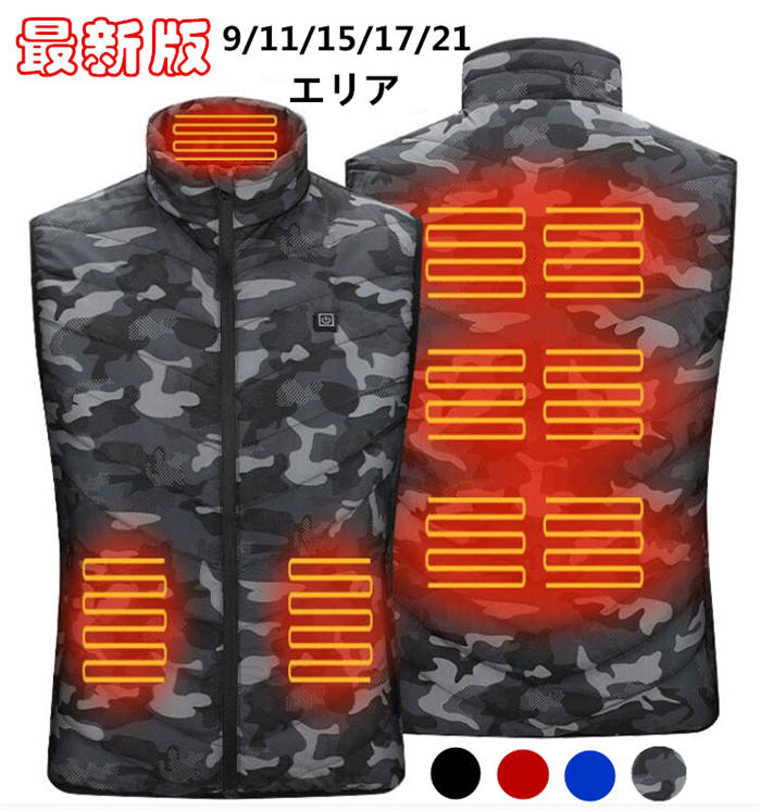 電熱ベスト9 11 15 17 21か トップス ベスト ジレ 早い者勝ち 迷彩9エリア ブラック9エリア ネイビー9エリア レッド9エリア ブラック11エリア ネイビー11エリア ブラック15エリア ネイビー15エリア ブラック17エリア ネイビー17エリア ブラック21エリア ネイビー21エリア S M L XL 2XL 3XL 4XL 5XL 6XL