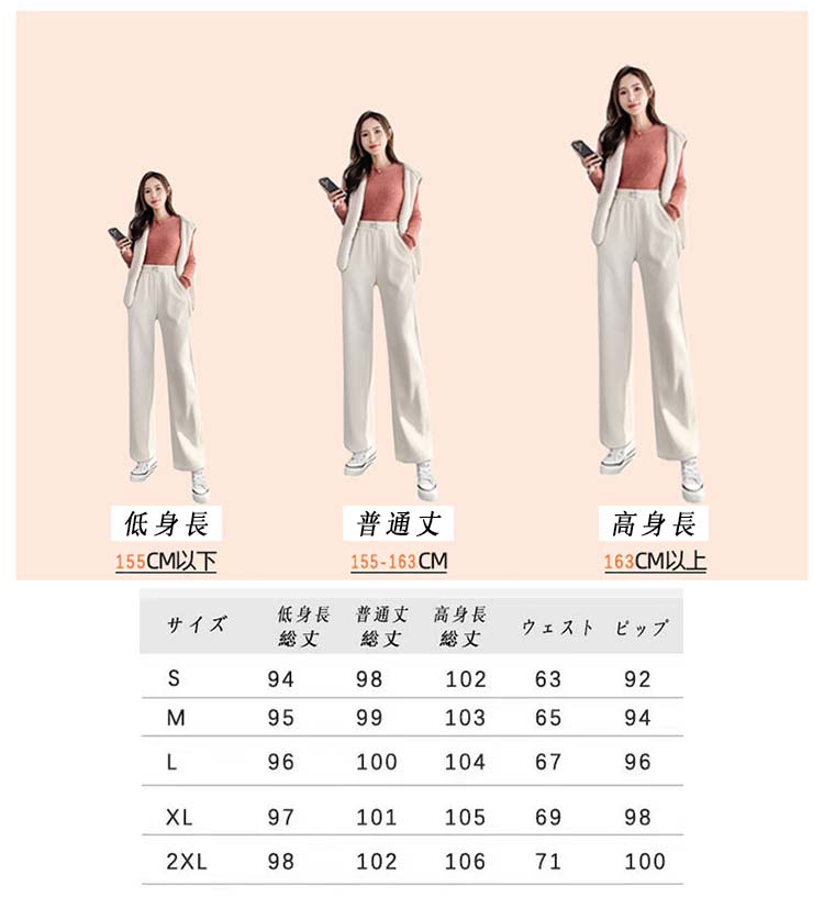 パンツ レディース 冬 裏起毛 ワイド レディースファッション 新登場! M(40-52.5KG) L(52.5-60KG) XL(60-70KG) 2XL(70-82.5KG) 裏起毛低身長(ベージュ) 裏起毛普通丈(ベージュ) 裏起毛高身長(ベージュ) 裏起毛低身長(ブラック) 裏起毛普通丈(ブラック) 裏起毛高身長(ブラック)