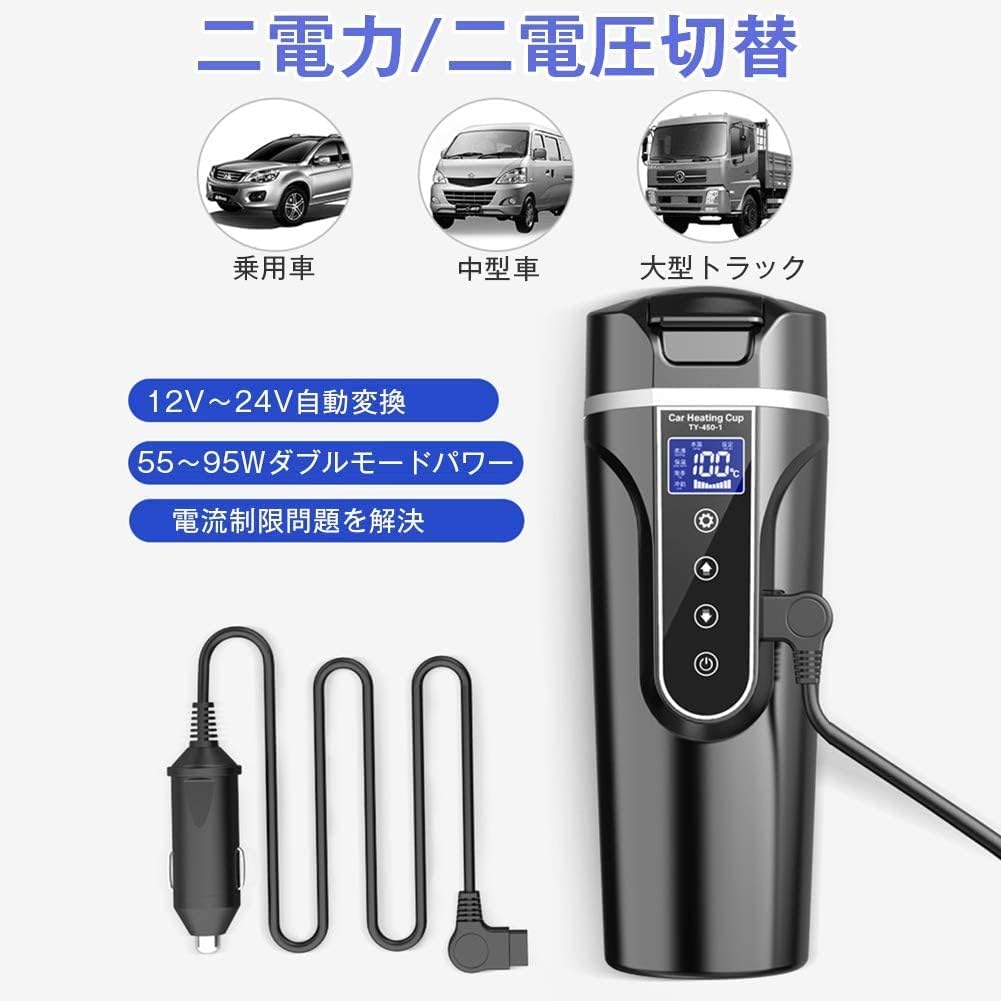 車載電気ケトル 40℃~100℃ 500ml大容量 カー用 トラック用DC12V 24V 加熱 保温 湯ボルト ポータブルケトル ミニ電気ケトル 湯沸し器