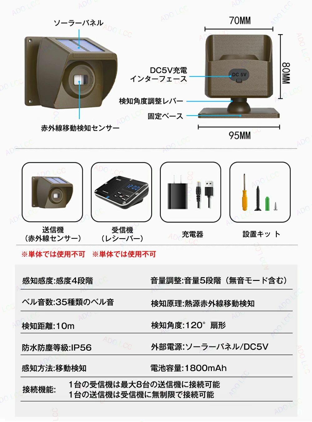赤外線アラームセンサー 人感センサーチ ブラウン( 送信機1個 受信機1個) 迷彩柄( 送信機1個 受信機1個)
