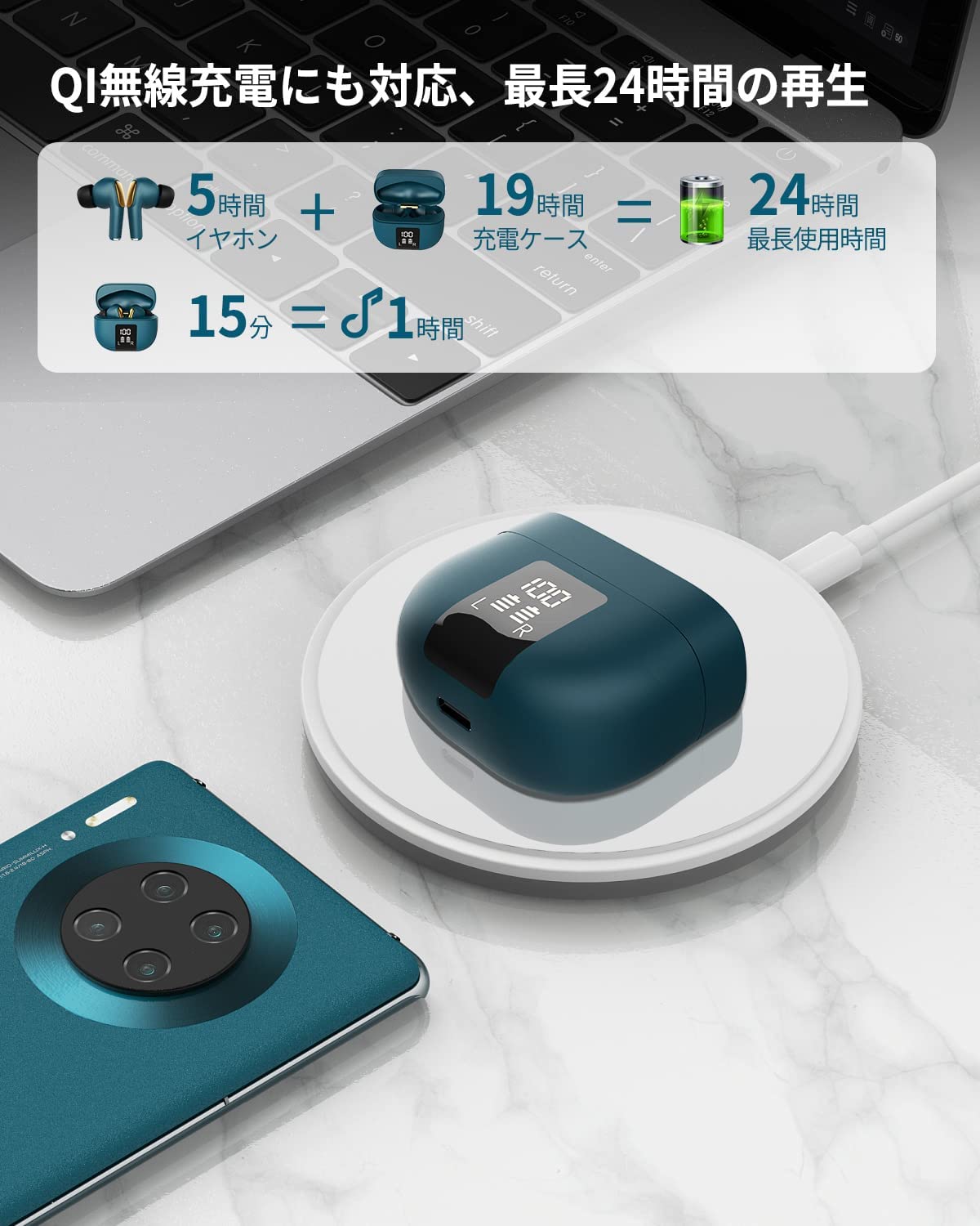 音質重視 ワイヤレスイヤホン blue ブルー ブラック ホワイト ピンク グリーン