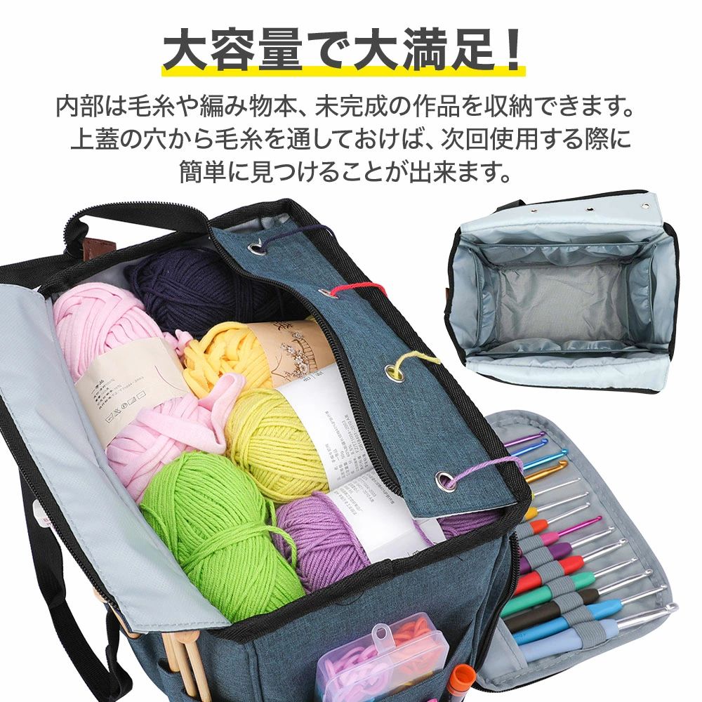 編み物 道具 収納 バッグ 手芸 裁縫 日用品雑貨 文房具 手芸 続々登場 グレー ブルー パープル ブルー葉 ネイビー葉