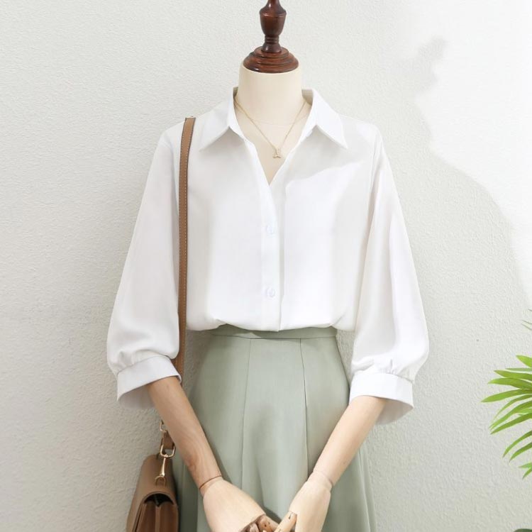 シャツ レディース ブラウス 7分袖 トップス シャツ ブラウス 続々登場 ホワイト イエロー ベージュ ブルー S M L XL 2XL 3XL