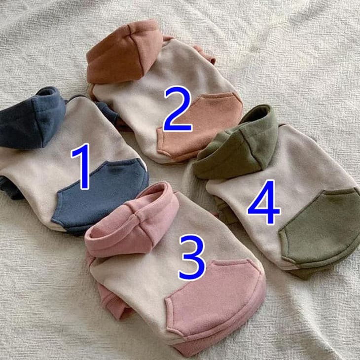 寒い季節のお散歩もこれ一枚で暖かくおしゃれに。ふわふわの起毛感と柔らかな生地の犬用パーカーです。背中にはポケットが付き、見た目も可愛いカラーコーディネート。小型~中型犬にぴったりで、おすすめ。頭からかぶせて着せるタイプで、着脱もスムーズにできます。