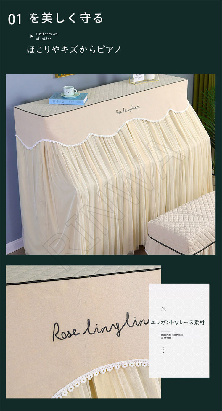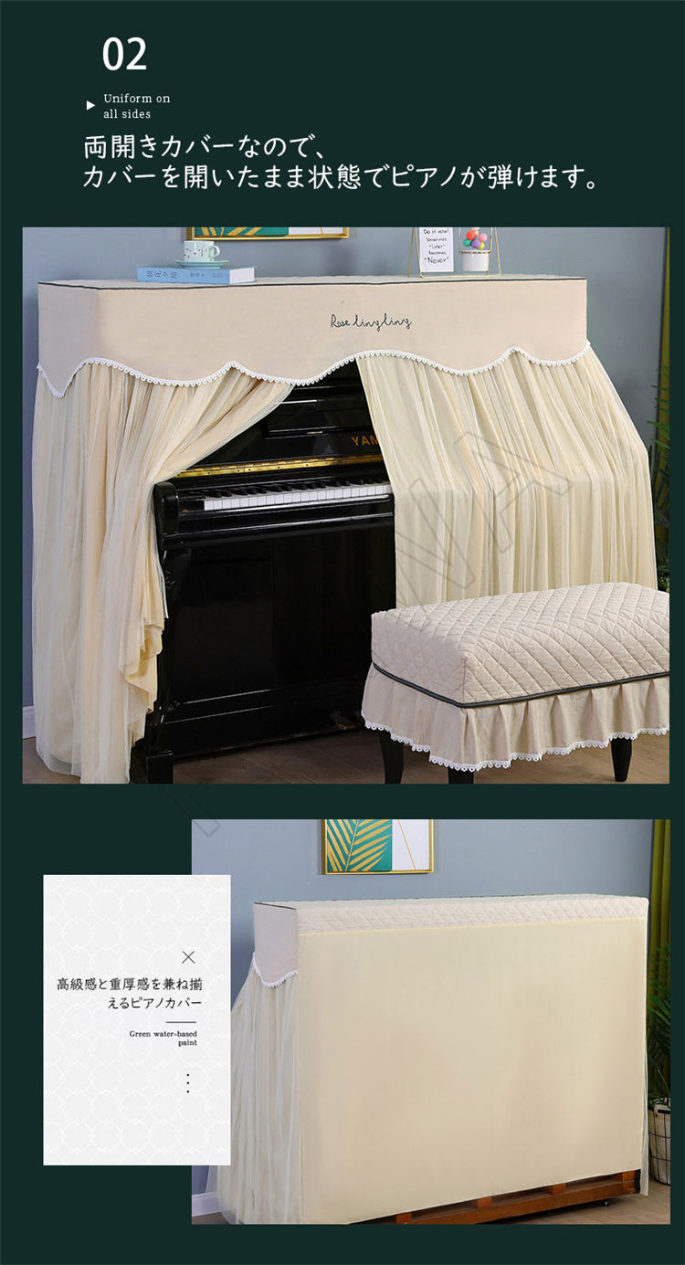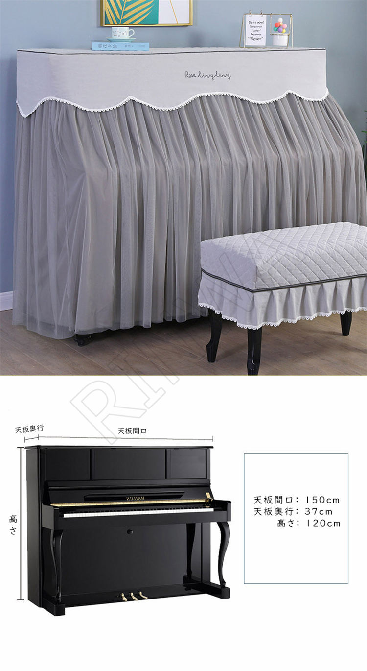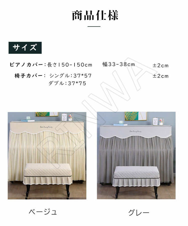 アップライトピアノ カバー トップカバ グレー ベージュ ピアノカバー+シングル椅子カバー ピアノカバー+ダブル椅子カバー