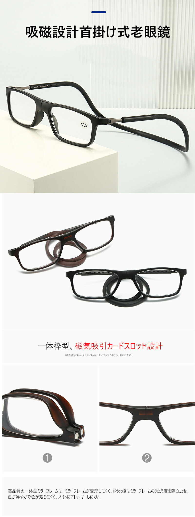 紛失防止老眼鏡 強力マグ スマート 首 眼鏡 サングラス 老眼鏡 通販 ディープブルー ブルー ブラウン ブラック レッド +1.00 +1.50 +2.00 +2.50 +3.00 +3.50 +4.00