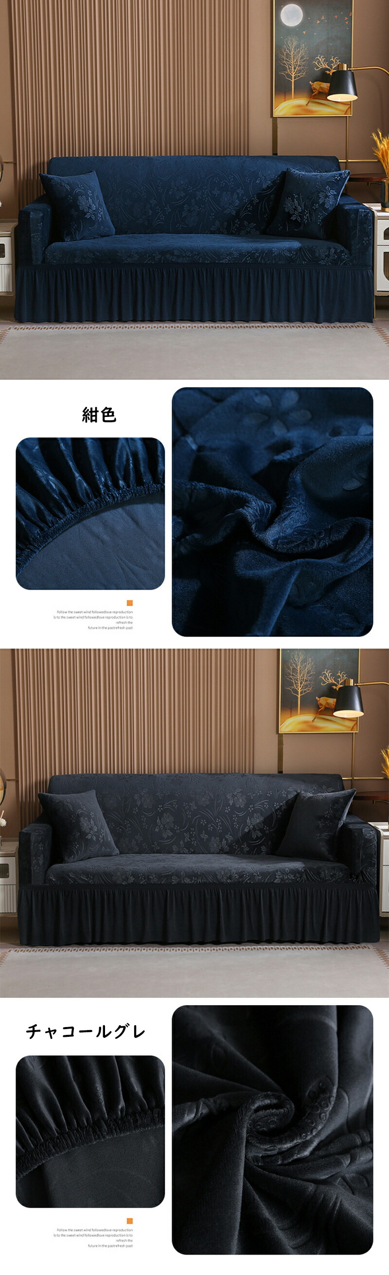 ソファーカバー ソファカバー 1人掛け チャコールグレ ダークグレー グレー 紺色 ブルー ベージュ 1人掛け(90-140CM) 2人掛け(145-185CM) 3人掛け(190-230CM) 4人掛け(235-300CM)