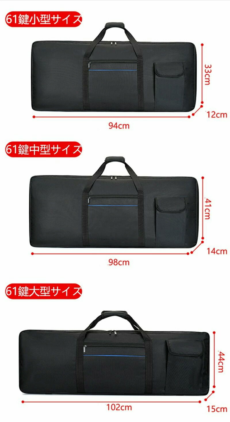 キーボードケース 88鍵 61鍵 キー 61鍵小型サイズ94*33*12 61鍵中型サイズ98*41*14 61鍵大型サイズ102*44*15 88鍵小型サイズ136*33*17 88鍵大型サイズ139*44*17