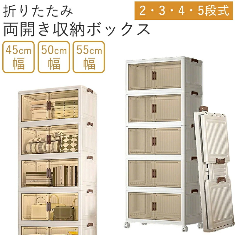 キャスター付き収納キャビネット 扉付き 45cm 50cm 55cm 2段式 3段式 4段式 5段式