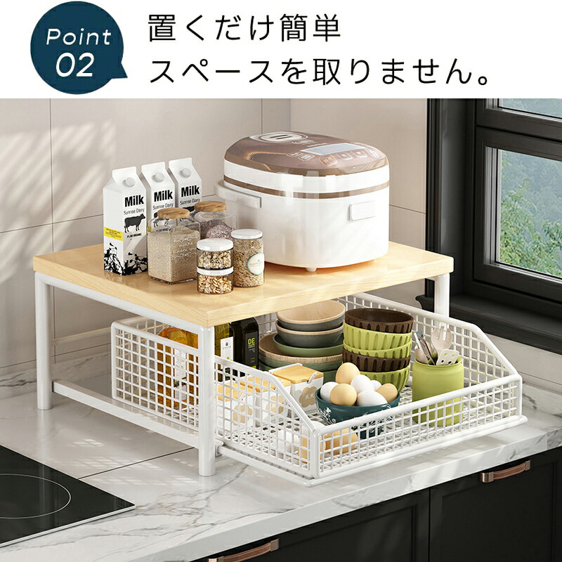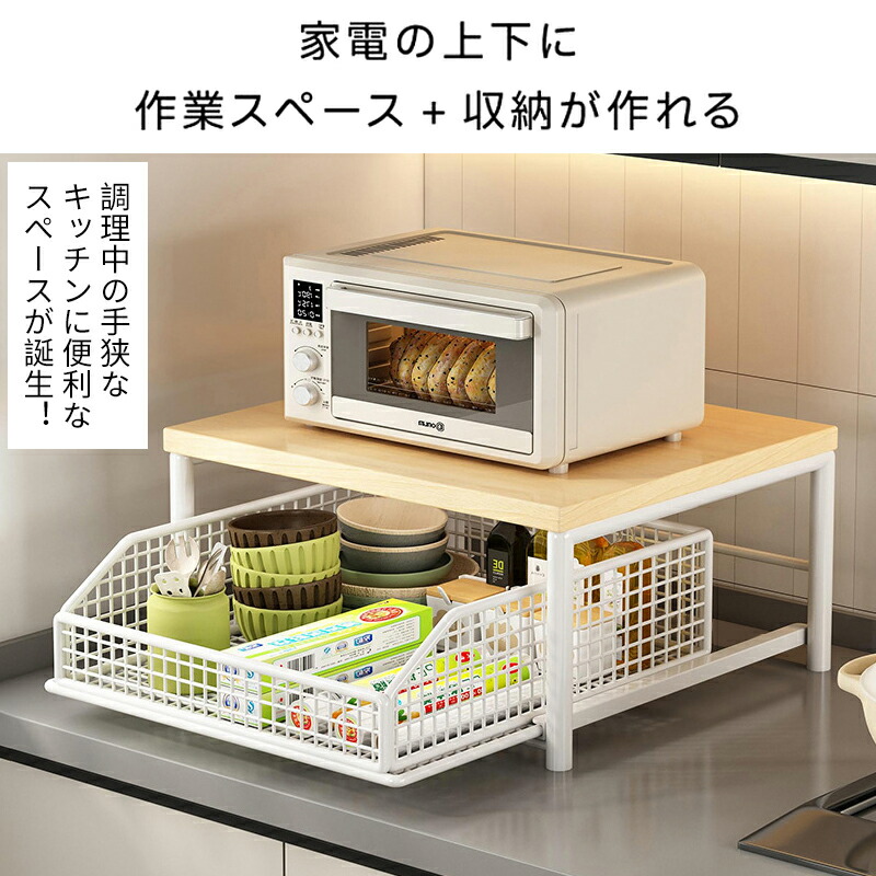 レンジラック 卓上 引き出し付き 電子 キッチン整理用品 調理小道具立て 早い者勝ち ホワイト ブラック A タイプ B タイプ