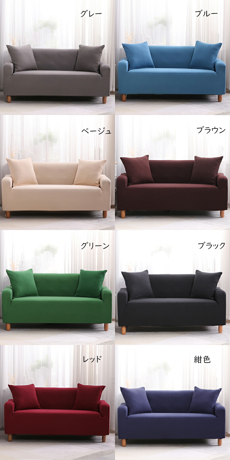 ソファーカバー 2人掛け 肘付き スト グレー レッド 紺色 グリーン ブラック ブラウン ベージュ ブルー 1人掛け(90-140CM) 2人掛け(145-185CM) 3人掛け(190-230CM) 4人掛け(235-300CM)