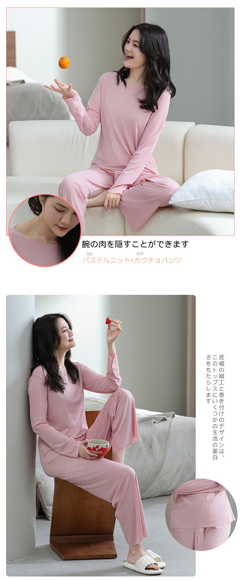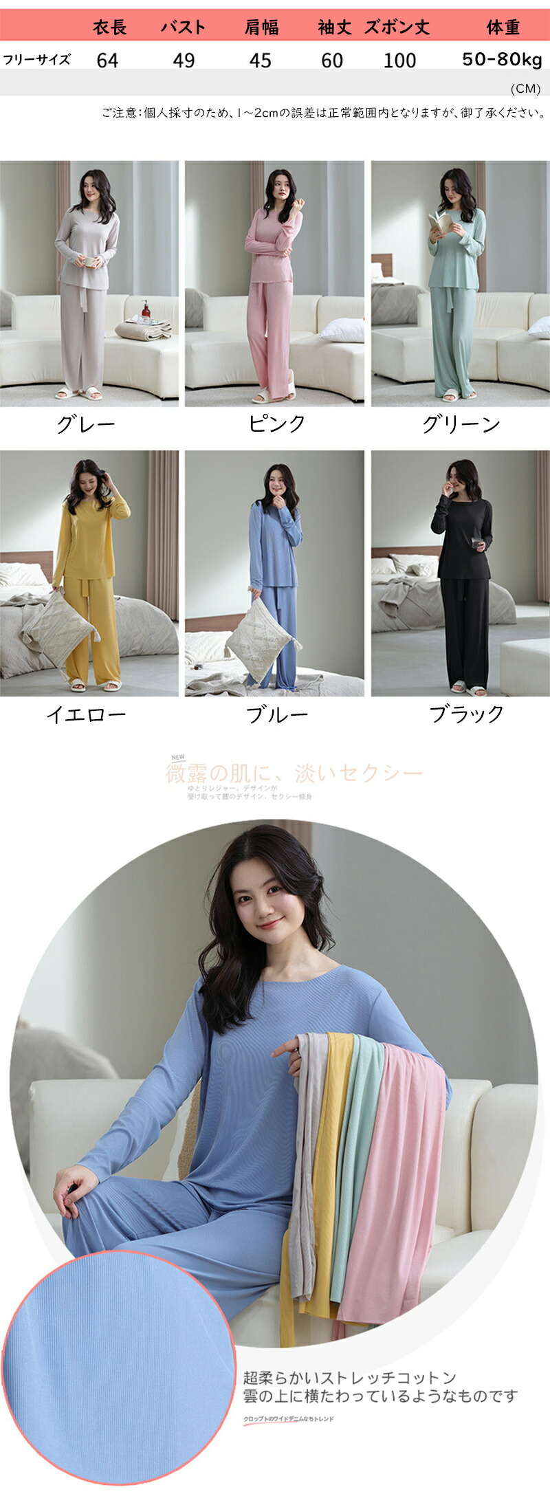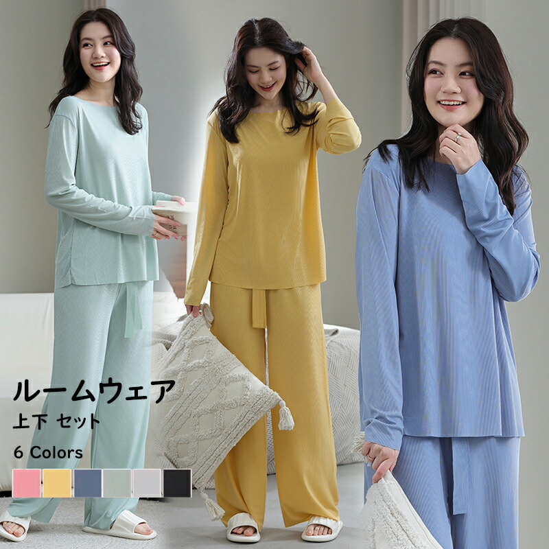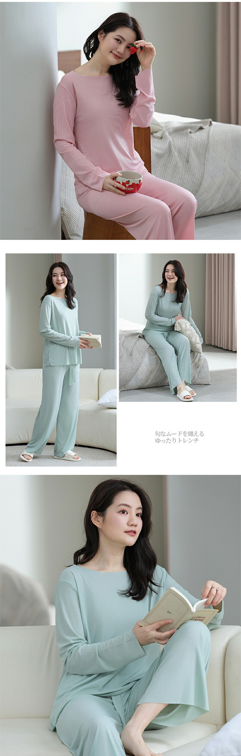 さらてろ ルームウェア 楽ちん リブ トップス Tシャツ カットソー 特集 グリーン ブラック グレー イエロー ピンク ブルー