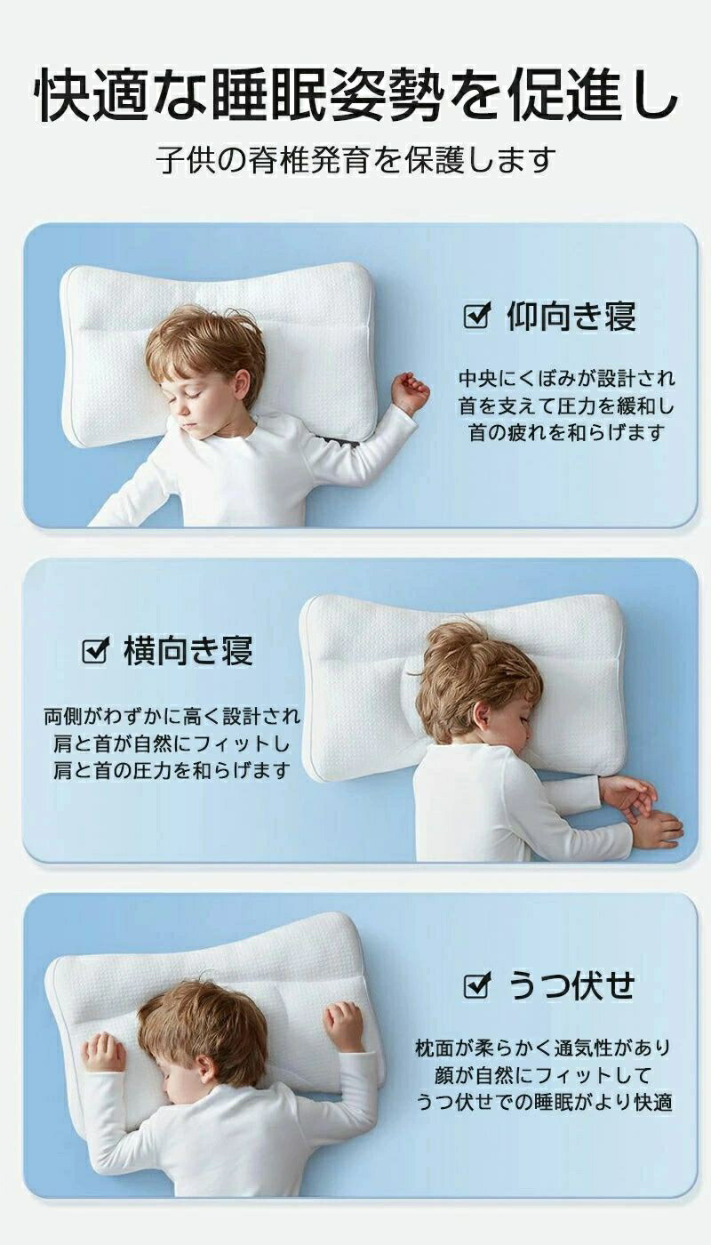 枕 まくら 呼吸する子ども枕 子供 キ インテリア 寝具 収納 通販 50×30×4/2cm 50×30×6/4cm 55×35×9/6cm