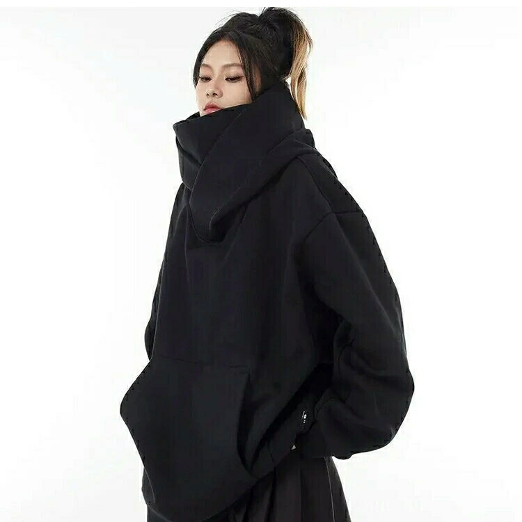 ボリュームネックパーカー パーカー プ レディースファッション 新作 グレー裏起毛 ブラック裏起毛 ブラック薄手 グレー薄手 S M L XL 2XL 3XL