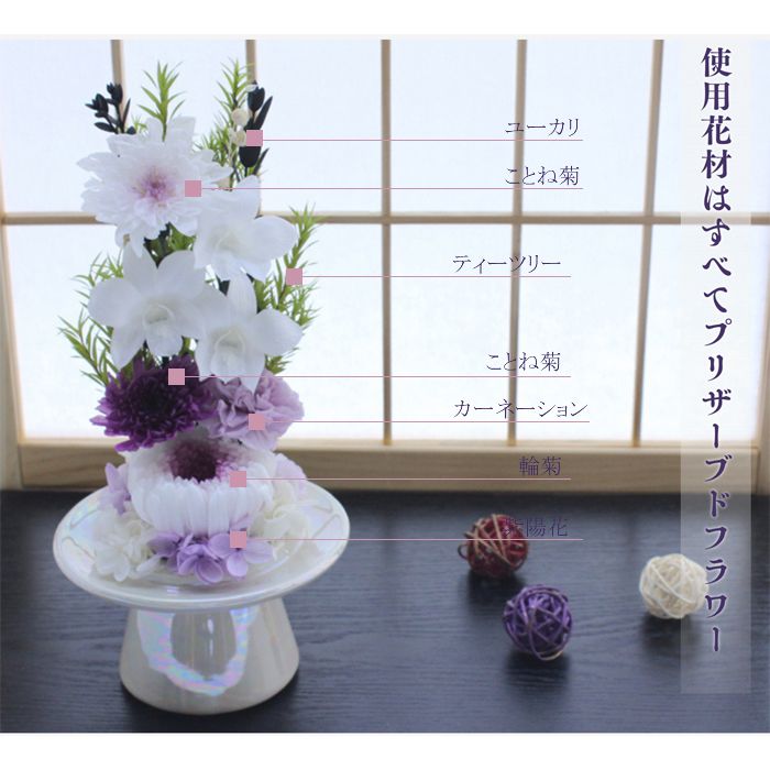 仏花 プリザーブドフラワー お供え お 麗白-ましろ- 紫月-しずき-