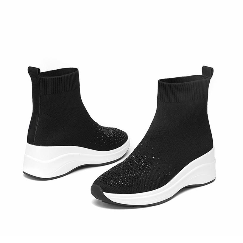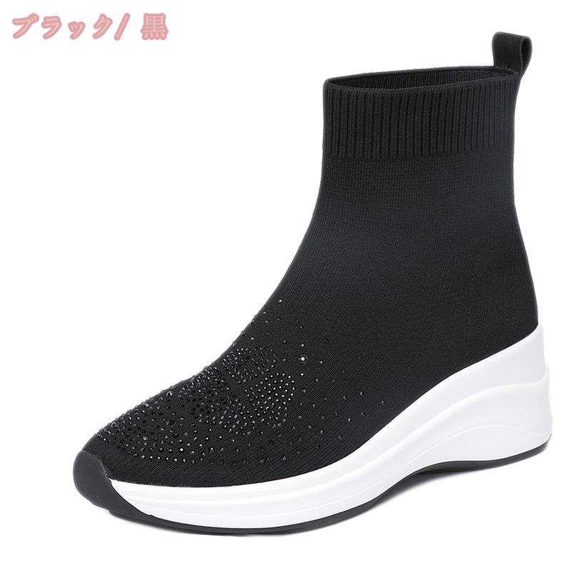 レディース ソックスブーツ ショート ロングブーツ ウエッジソール 大きいサイズ ラインストーン ニット チャンキーヒール 厚底靴 オシャレ 美脚 ファッション コンフォート 通学 滑り止め 安定感