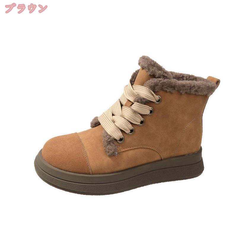スノーブーツ ムートンブーツ レディース ショート 大きいサイズ 編み上げ スエード ピンク 黒 裏起毛 暖かい かわいい 紐 滑らない 雪 靴 マジックテープ 保温性 厚底 キャンプ ダウン