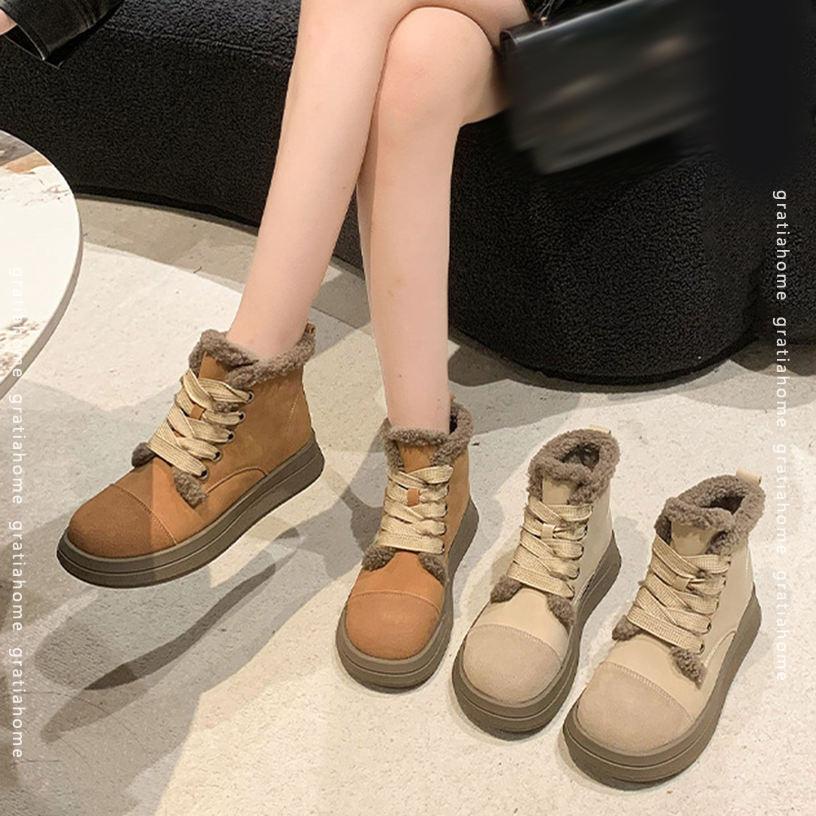 レディース ショートブーツ バックジッパー オシャレ かわいい 厚底 冬靴 防寒 スノーブーツ ウインター ファッション あったか カジュアル ふわふわ コンフォートシューズ 雪の日 雪面 冬用 雪用