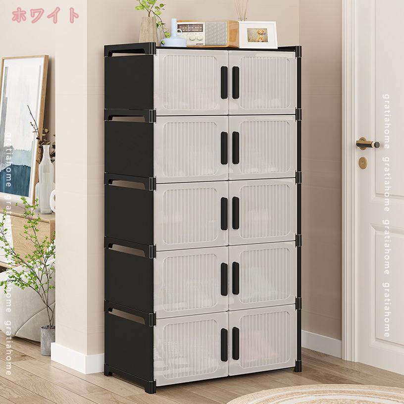 シューズボックス 下駄箱 スニーカー 靴収納 組み立て式 靴 箱 棚 クロゼット 玄関 多層 開閉扉 省スペース かび対策 大容量 白 スッキリに収納