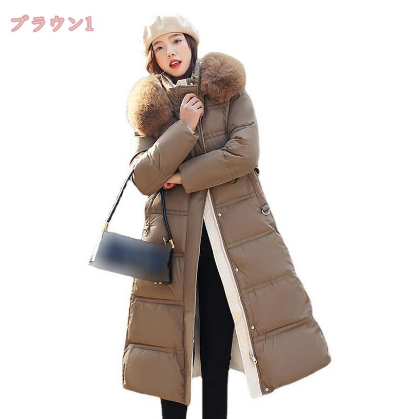 レディース ダウンジャケット冬コート ロングコート フード付き オーバーサイズ 女 厚手 防風 防寒 撥水加工大きいサイズあり 黒 ブラック 無地 ジップアップ 冬服 防寒着 おしゃれ アウター