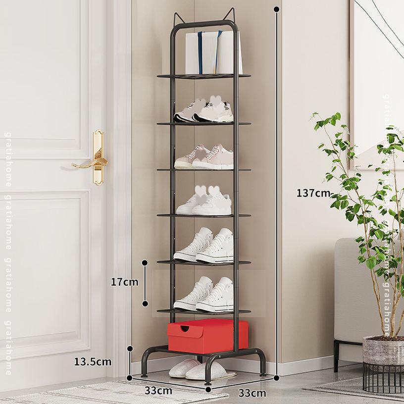 かわいい 簡易シューズラック スリム 靴収納 靴棚 省スペース 大容量 組み立て式 靴置き タワー コンパクト 鉄製 オープンシェルフ 滑り止め トレー 狭い 玄関 クローゼット アパート用 靴 廊下