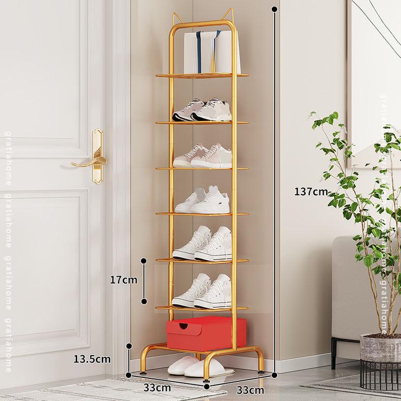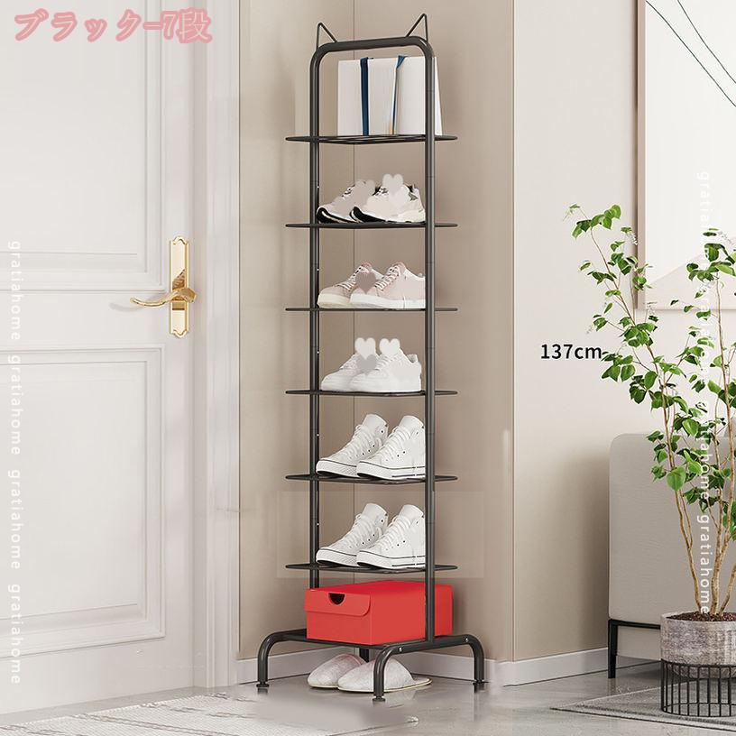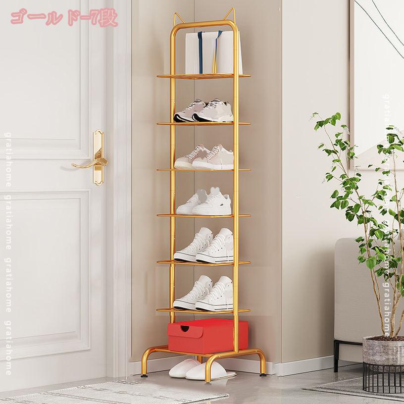 かわいい 簡易シューズラック スリム ゴールド-7段 ブラック-7段 ホワイト-7段