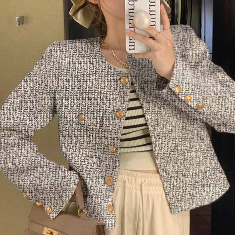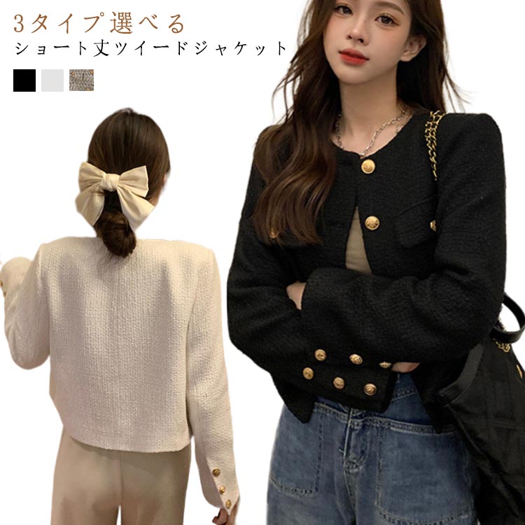 ツイードジャケット ノーカラ― チェッ レディースファッション 豊富 ブラック ホワイト グレー S M L XL 2XL