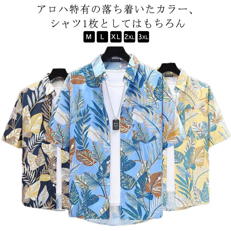 アロハシャツ メンズ 花柄 半袖シャツ トップス カジュアルシャツ 続々入荷中 ブラック ブルー イエロー M L XL 2XL 3XL