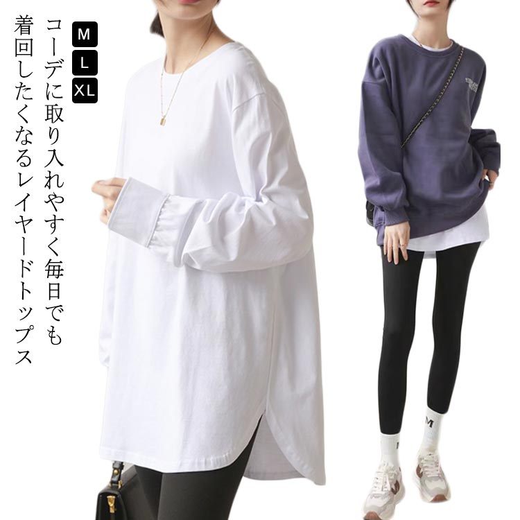 レイヤード Tシャツ 長袖 クルーネッ トップス Tシャツ カットソー 特集 M L XL