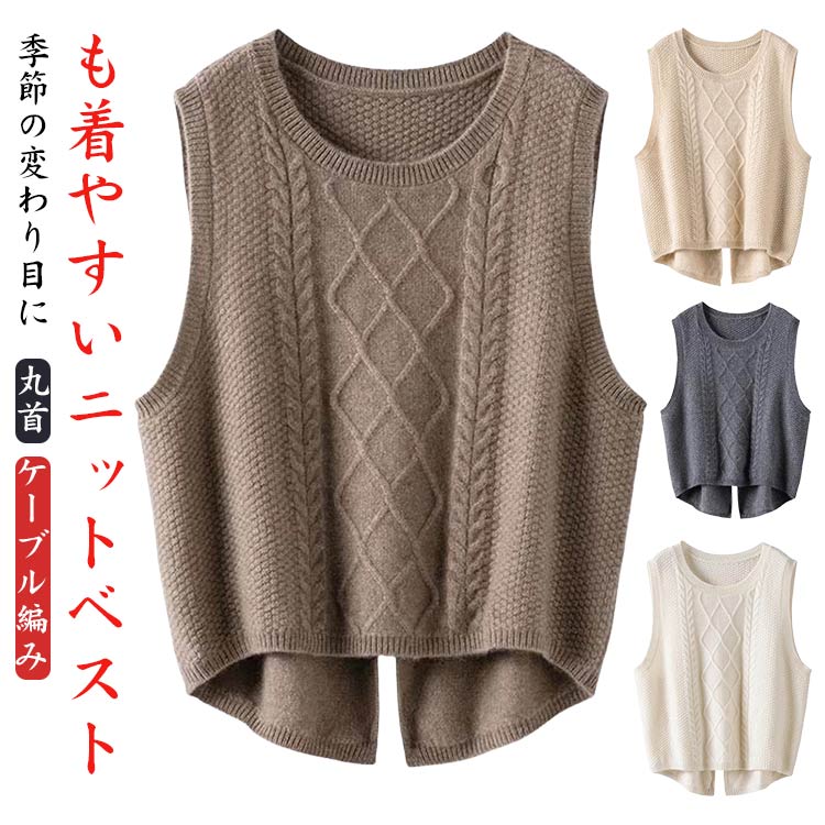 ニットベスト 暖かい 丸首 おしゃれ トップス ベスト 豊富な品揃え アイボリー ライトブラウン ダークグレー ホワイト ダークブラウン M L XL